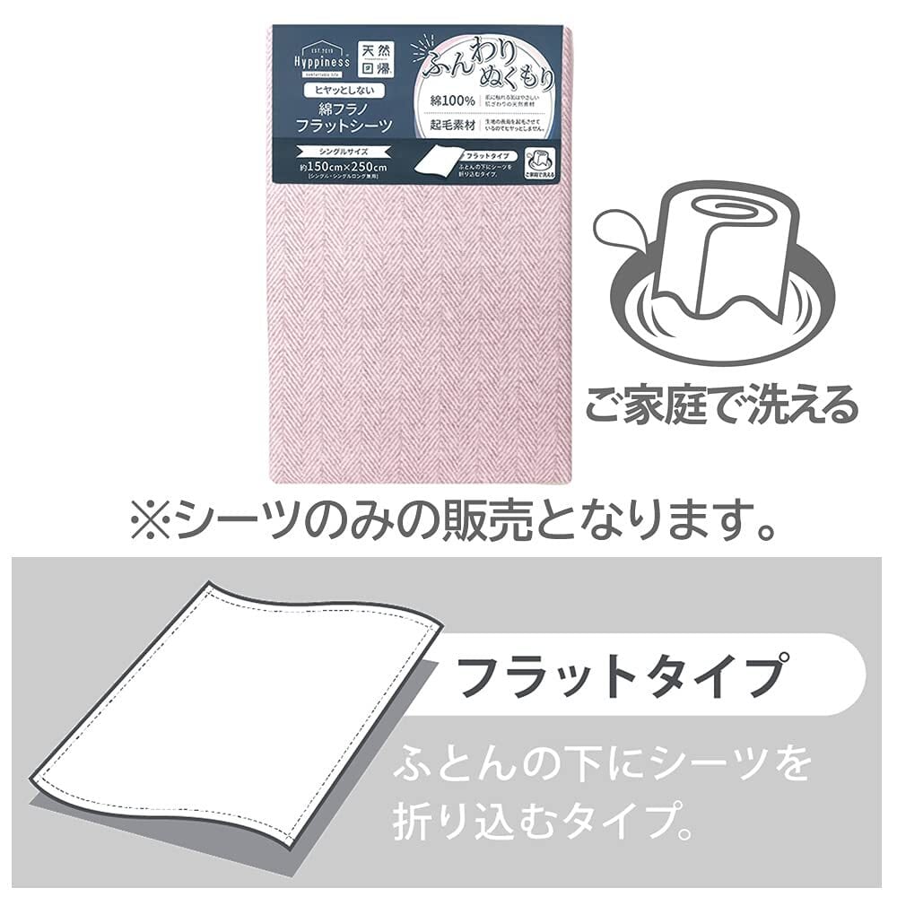 メリーナイト(Merry Night) シーツ フラットシーツ 起毛 ヘリンボーン柄 「フィスク」 ピンク 敷布団用 シングル 約150×250cm 綿100% フラノ生地 ふんわり ぬくもり ヒヤっとしない 肌ざわり 秋冬寝具 洗える HP72007-16