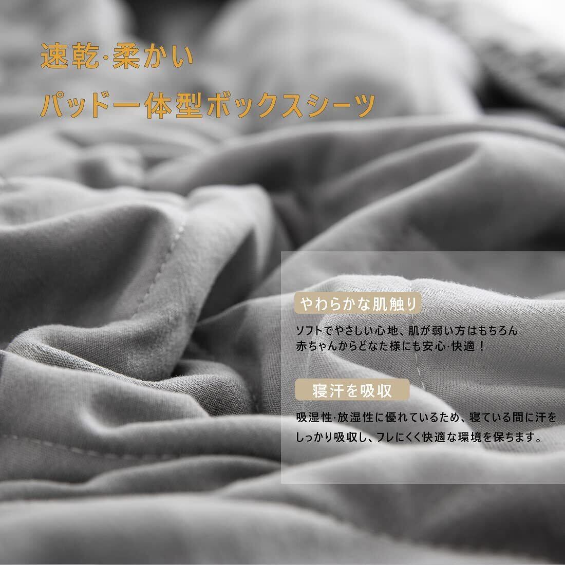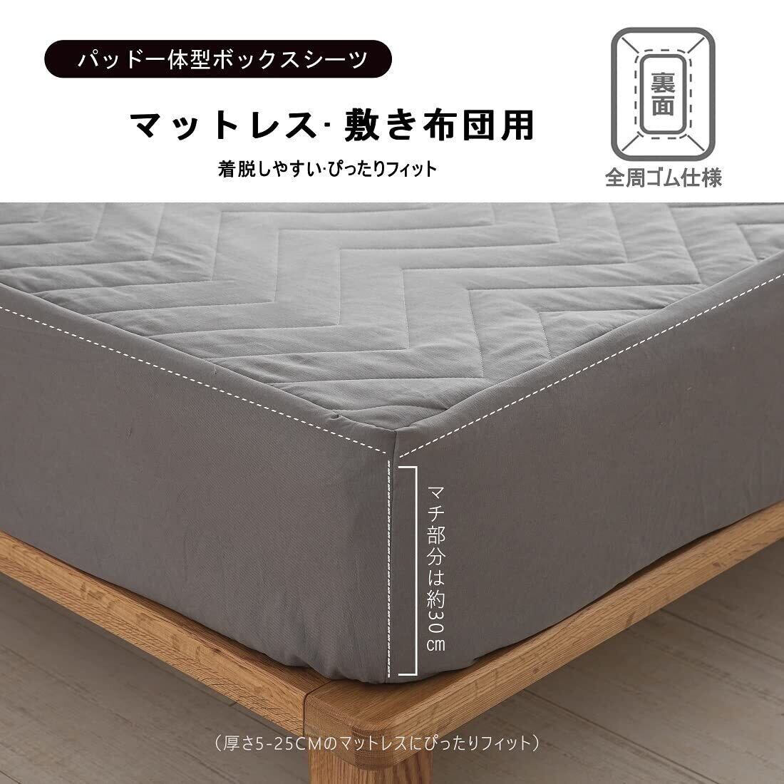 パッド一体型ボックスシーツ ワイドダブル 150x200x30cm 薄型 敷きパッド オールシーズン快適 ベッドパッド 防ダニ 抗菌防臭 吸汗 速乾 全周ゴム付き 洗える ホテル仕様 グレー