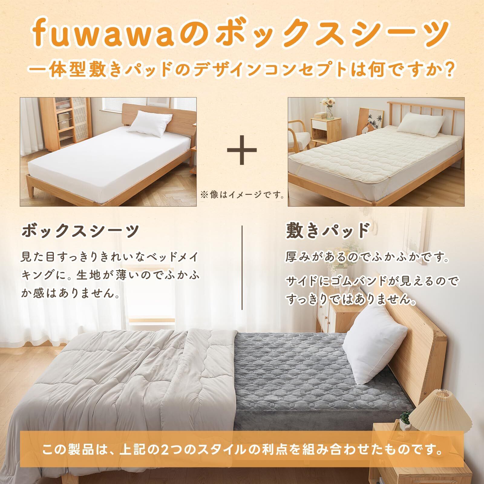 【新着商品】fuwawa 敷きパッド セミダブル パッド一体型ボックスシーツ 冬 ベッドカバー【TEIJIN マイティトップ中綿使用】ベッドパッド ベッドシーツ マットレスカバー 敷ふとん兼用 洗える 暖かい フランネル 敷き毛布 全周ゴム付き 静電気抑制(120x200x30cm)グレー