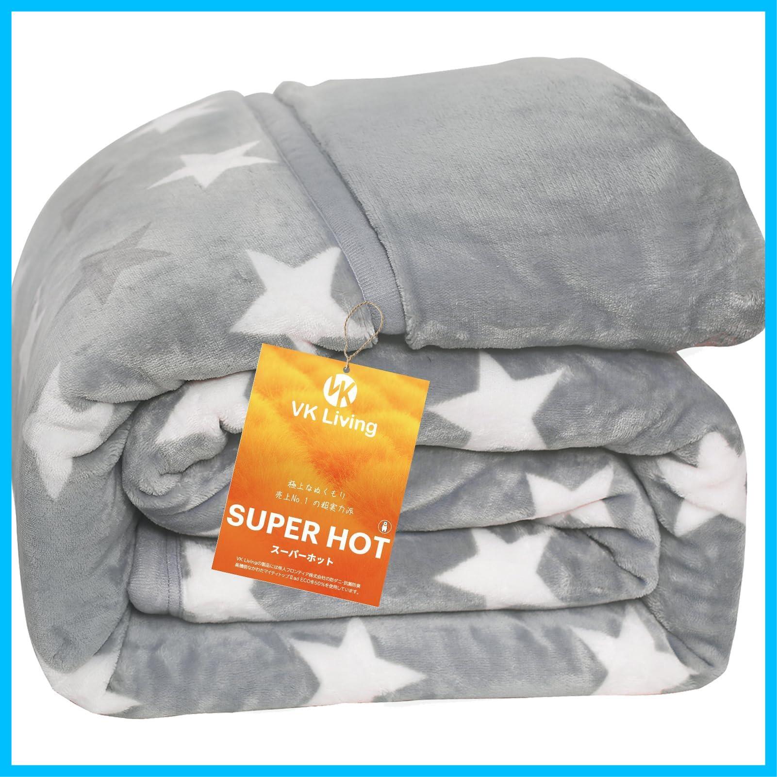 VK Living 毛布 二枚合わせ シングル 【瞬間超発熱・SUPERHOT次世代調温中綿】【SUPER HOT】 冬用 あったか 厚手 フランネル扁平糸 保湿加工 24時間持続制菌消臭 襟付き 吸湿発熱 ふわふわ 静電防止 丸洗いOK 140x200cm スター柄グレー