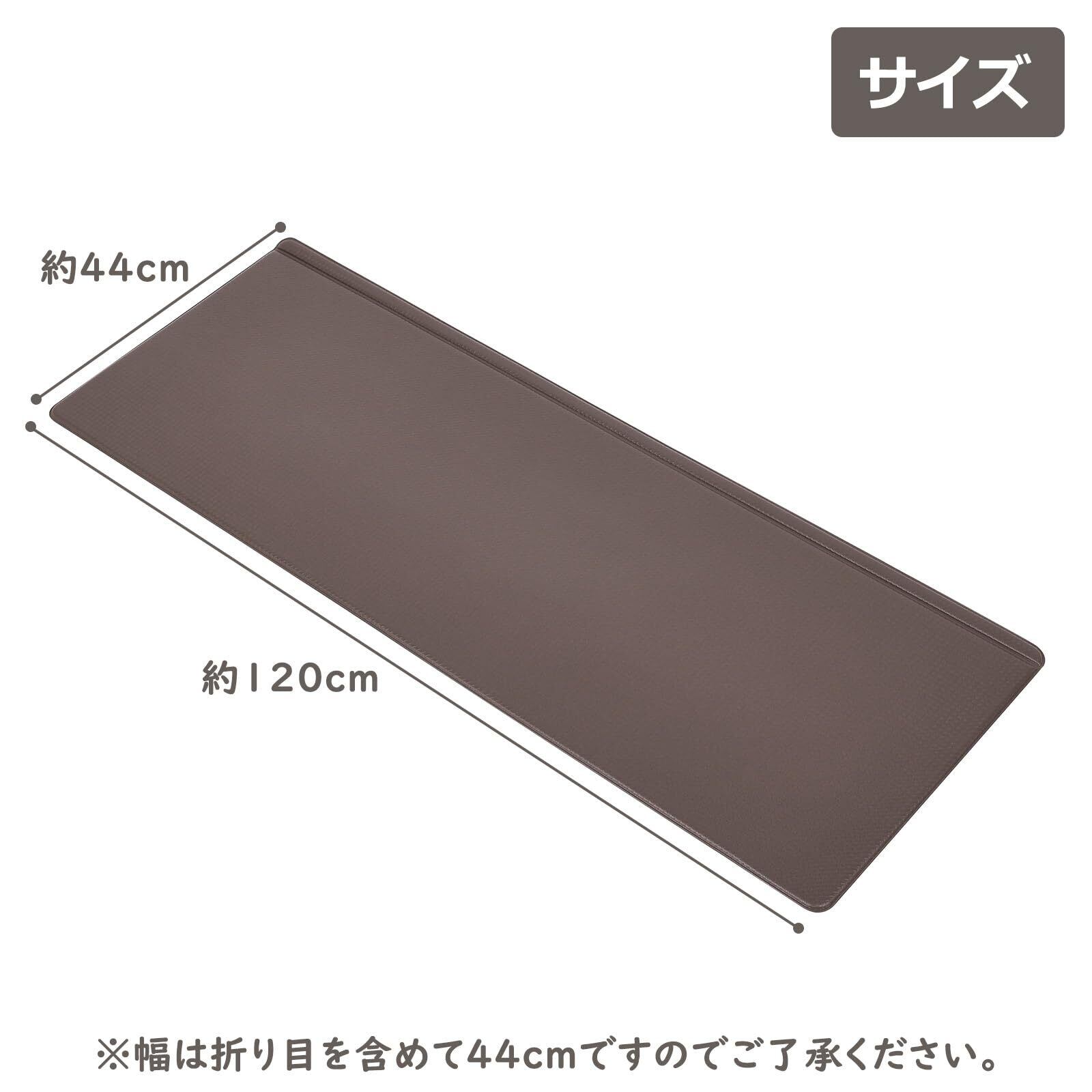 Baibu Home キッチンマット 拭ける L字折り目付き 44x120cm 台所マット 厚さ8mm 低反発クッション 滑り止め ふける 北欧 はっ水 PVC ポリ塩化ビニール おしゃれ ブラウン 無地