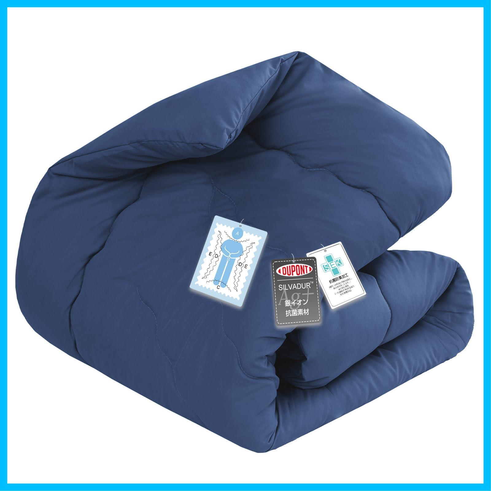 Keusnix 掛け布団 肌掛け布団 シングル オールシーズン 軽量 【体にフィットする・特有專利取得キルト】かけ布団 ふんわり 柔らかい ほこりが出にくい 通気 保温 洗える 掛けふとん Ag+銀イオン抗菌素材 SEK認証 抗菌防臭 防ダニ 吸水速乾 合掛け布団(150X210cm ネイビー)