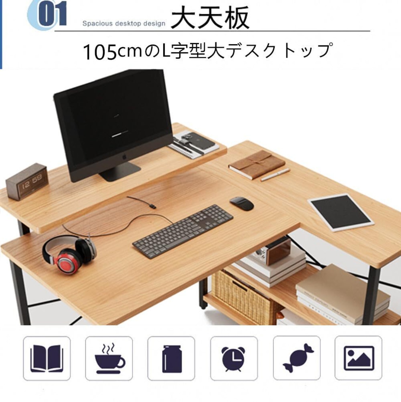 Embrace life パソコンデスク computer desk 机 収納 ゲーミングデスク L字型 リムーバブルラック pcデスク デスク ラック付き コーナーデスク オフィスデスク 在宅勤務 副105cm ライトイエロー