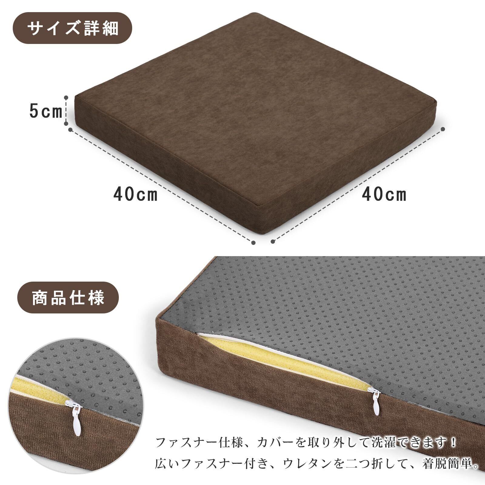 【座布団のサイズと圧縮包装】サイズ:約幅40×奥行40cm×厚み5cm(サイズの誤差は多少発生します。ご了承下さい)。重さ0.4kg;厚さは5cmで、チェアクッションとしても机との高さが合いやすく、テレワーク中の腰痛軽減に良いです。包装が圧縮状態なので到着後はパンパンと叩きほぐしてください、完全に膨らむまでは約1日-2日かかるおそれがあります。