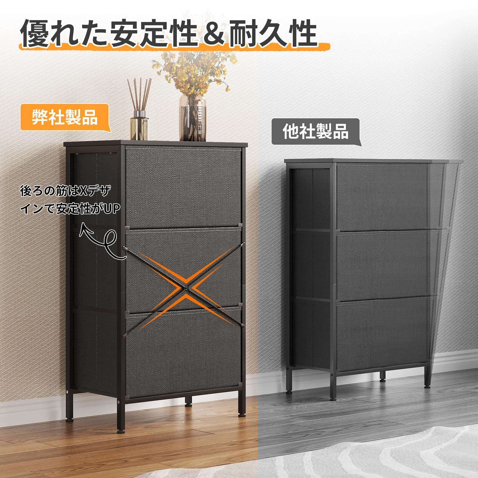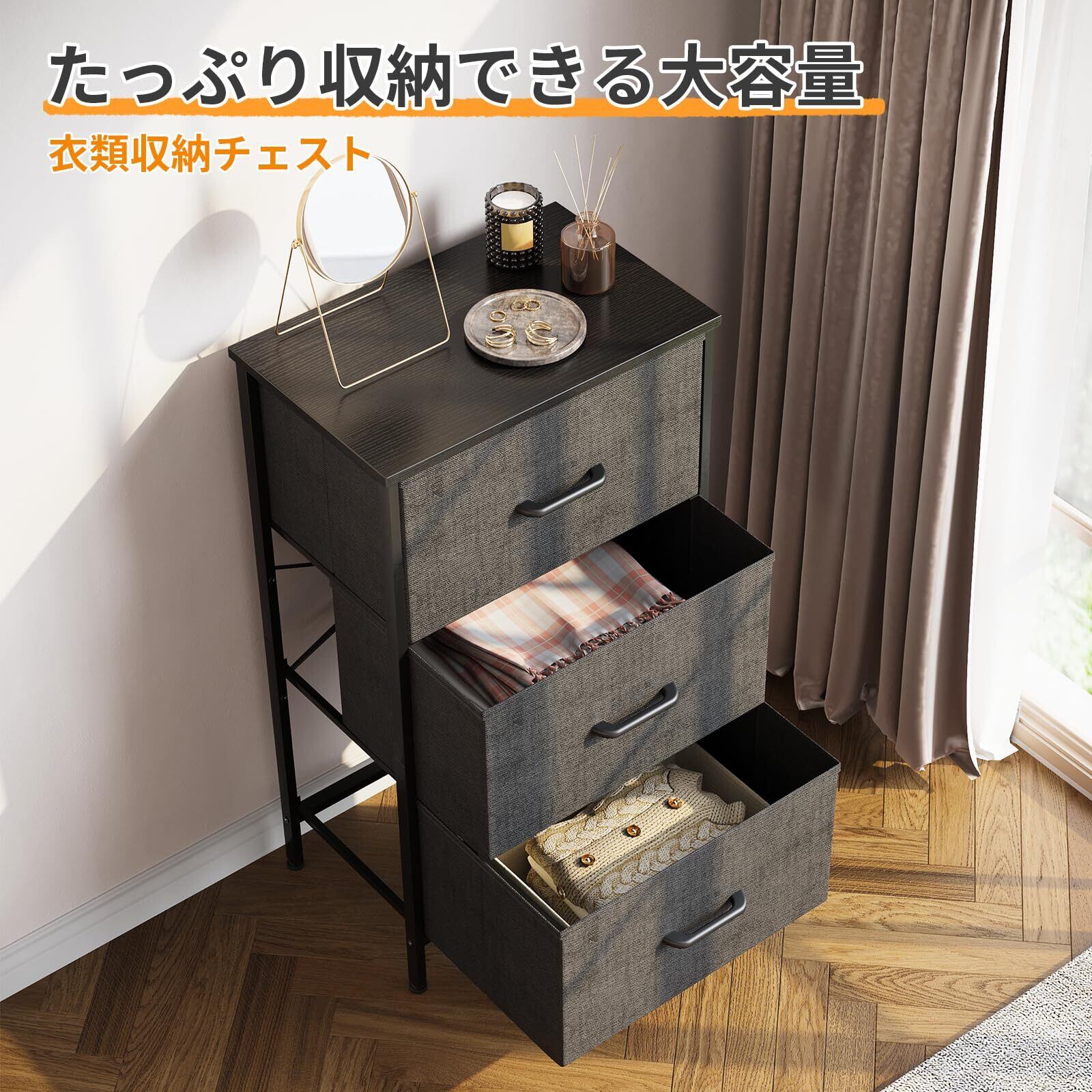 【新着商品】KKL チェスト タンス 収納ケース 衣類収納 引き出し リビング収納 布製 引き出し 衣装ケース 箪笥 転倒防止 低ホルム 安定感 3段 【幅40×奥行30×高さ73cm】グレー
