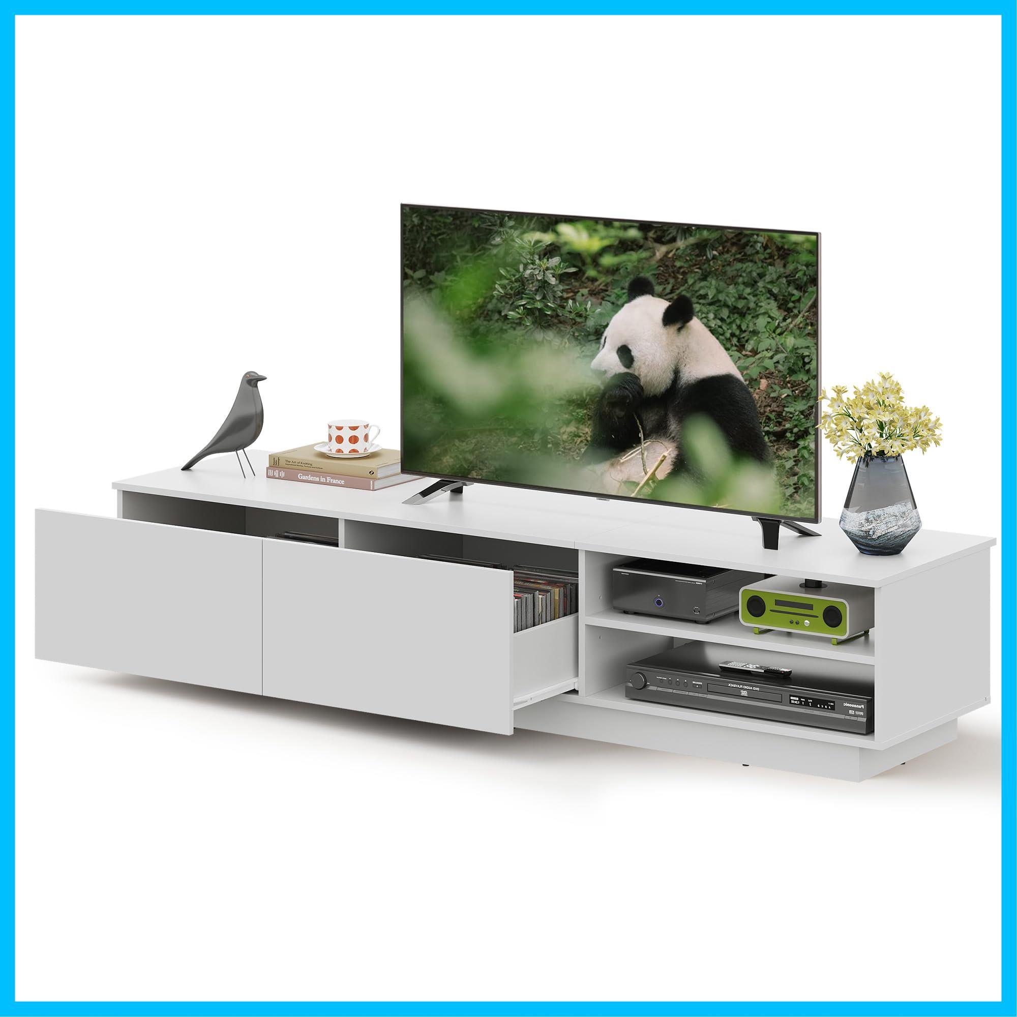 引出し二杯の隠し収納:二つの引出しでお気に入りの雑誌、DVD、ゲーム機などを楽に収納できます。外観はいつもきれいで、埃も防止します。また取っ手がないため、前面がフラットでスッキリに見えます。