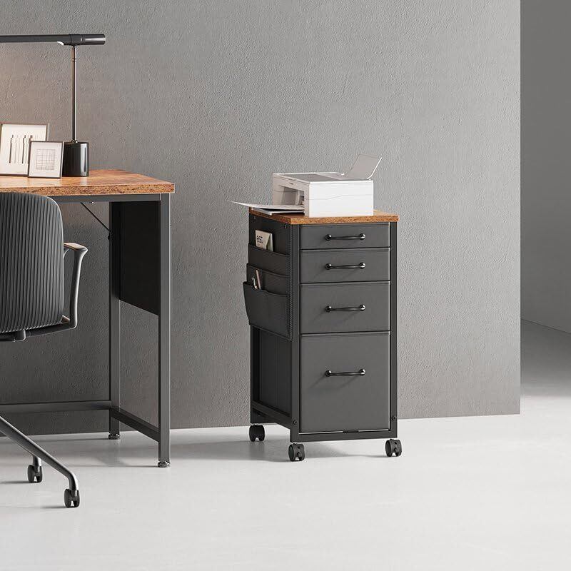 YeTom デスクワゴン スリム キャビネット サイドチェスト オフィスワゴン 布製 袖机 サイドワゴン 4段 Slim キャスター付き デスク下収納 幅385*奥行300*高さ640mm 柜子 ビンテージ