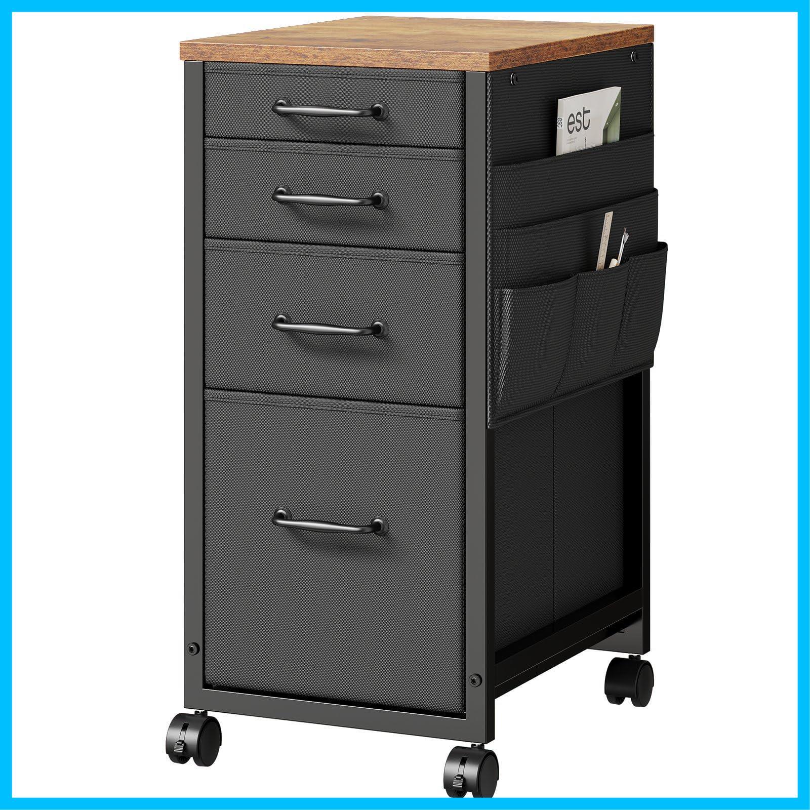【特価商品】YeTom デスクワゴン スリム キャビネット サイドチェスト オフィスワゴン 布製 袖机 サイドワゴン 4段 Slim キャスター付き デスク下収納 幅385*奥行300*高さ640mm 柜子 ビンテージ