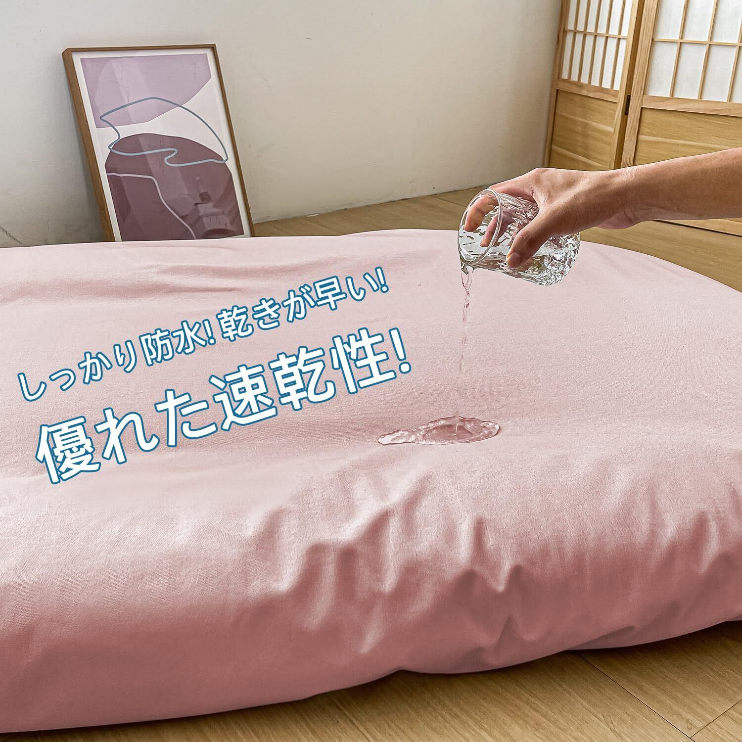 この敷布団カバーは、ワンタッチ式のため、取り付けや取り外しが楽々。忙しい毎日でも手間をかけずに、清潔な寝環境を保つことができます。瞬時にセットできるので、洗い替えが必要な時にも安心です。