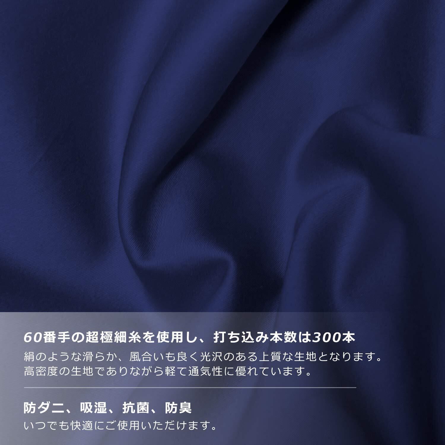 ■特徴: 綿100%、サテン織り、300本高密度生地、防ダニ、ファスナー式、滑らか、柔らかい、ネイビー