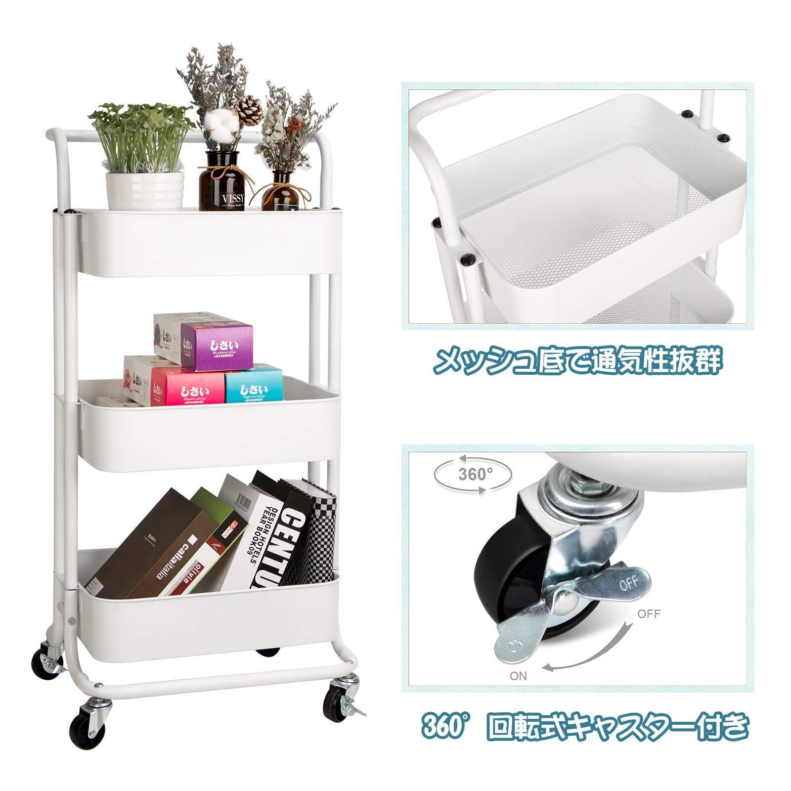 HANKEY キッチンワゴン ベビーワゴン 収納カート バスケットラック 整理棚 キャスター付き 3段 スチール製 頑丈 全体耐重45KG 幅43x奥行33.5x高さ86cm 合金鋼 ホワイト