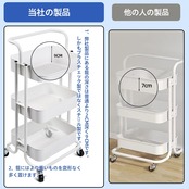 ■特徴: スチール製、頑丈、全体耐重45KG、キャスター付き、3段構造、幅43cm×奥行33.5cm×高さ86cm、ホワイト
