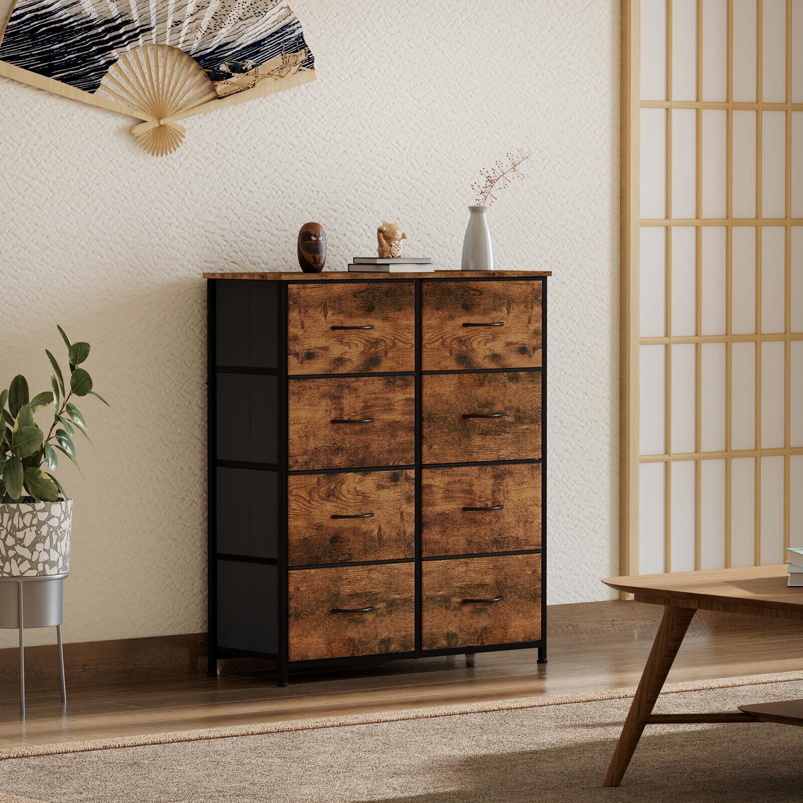 【数量限定】Somdot タンス 収納 チェスト 洋服 ダンスおしゃれ チェスト引き出し 棚 布製 洋服ダンス おしゃれ 箪笥 大容量 たんす 幅80 奥行30 高さ93 衣類 ワイド リビング 転倒防止 4段8杯 ビンテージ