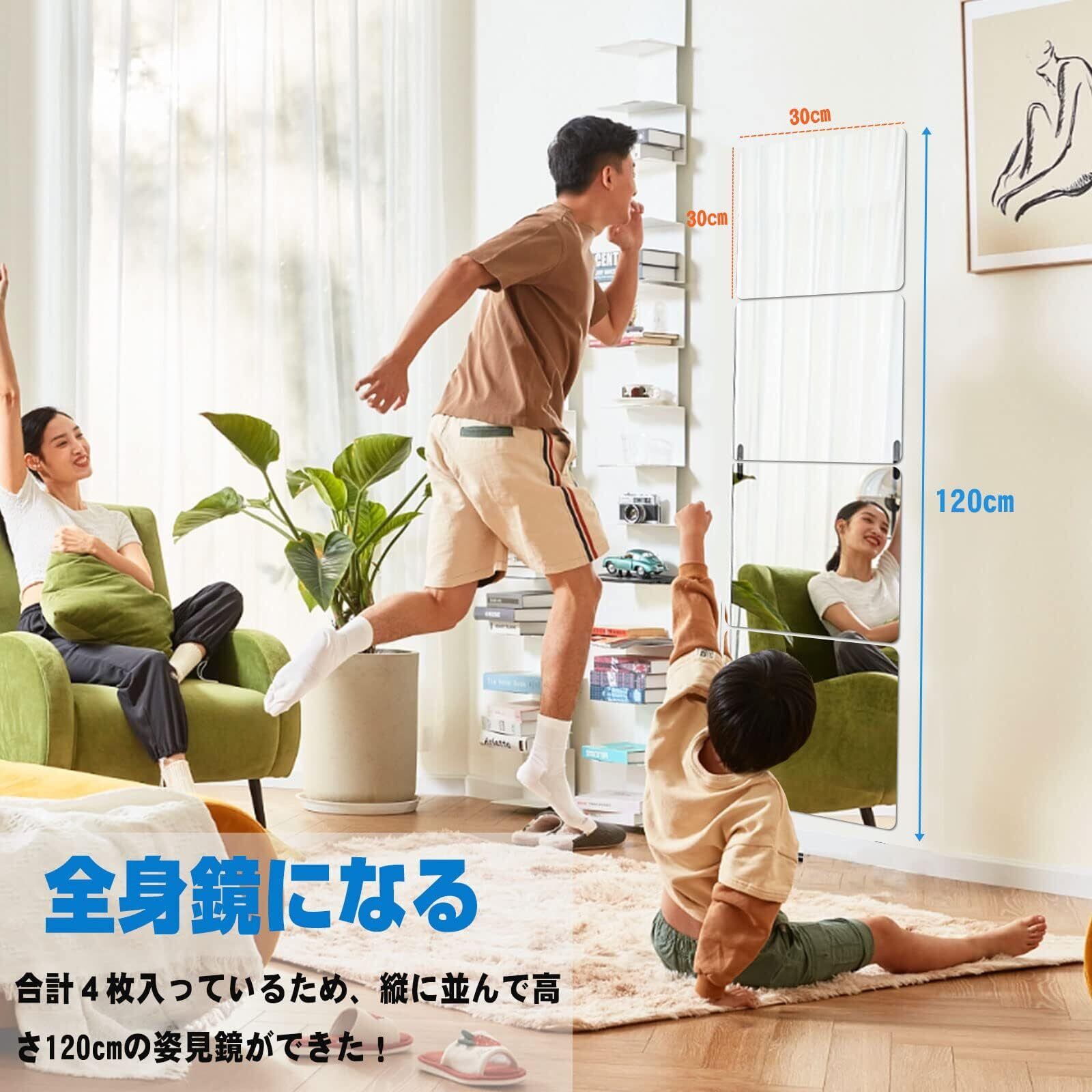 【新着商品】AUGSHYO 貼る鏡 全身 姿見 鏡 30cm*30cm 10枚セット 飛散防止 HD鏡面 角丸加工 軽量