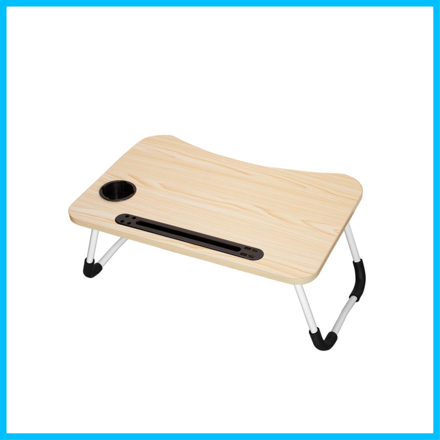 Ecbest 折りたたみテーブル 組み立て不要 折り畳みテーブル パソコンデスク リモートワーク ミニテーブル ベッドテーブル ローテーブル 座卓PCデスク サイドテーブル カフェテーブル コンパクト タブレットスタンドコップホルダー USBポート4個 ミニファンLEDライト ペン立て付き 完成品 持ち運び収納便利 幅60cm*奥行40cm*高さ28cm (木調ナチュラル)