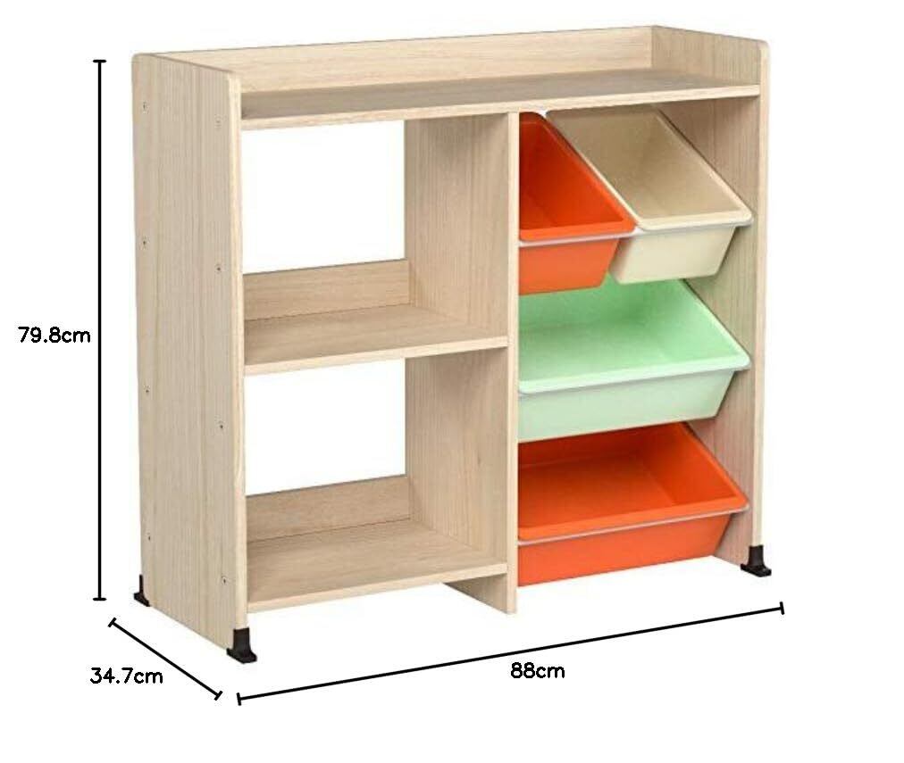 本棚とおもちゃ箱が一体となったデザインは、空間を有効活用しながらも、お部屋の雰囲気を明るく彩ります。様々なカラー展開があり、お子様のお好みに合わせて選ぶことができます。