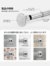 この突っ張り棒は、耐震頑丈設計により、40~50kgの荷物をしっかり支えることができます。しっかりとしたステンレス製の構造で、落下の心配も無用です。お気に入りのシャワーカーテンや洗濯物も安心してお使いいただけます。