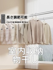 「驚異・耐荷重 突っ張り棒」は、幅50cmから260cmまで調整可能で、様々な場所での使用に最適です。天井や窓枠に設置するだけで、浴室収納や布団干し、またはクローゼットのコート掛けとしても使用できます。これ一つで、空間を有効活用しましょう!