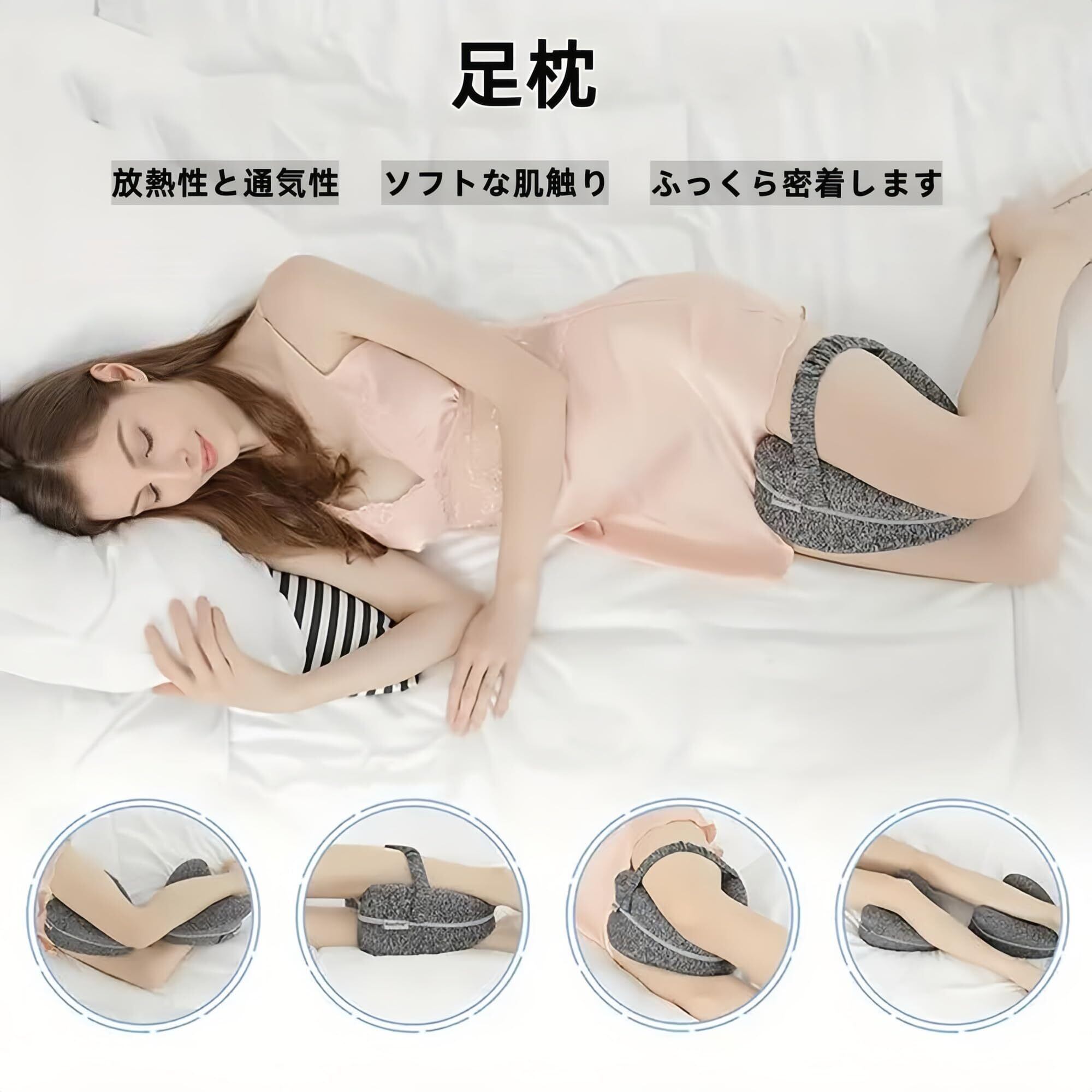 足枕 膝枕 就寝用 股関節痛と坐骨神経痛 妊娠 膝クッション をらげするスムーズスパイン矯正枕 質の高い睡眠 低反発膝枕 横向き膝枕寝用 補助枕 カバー洗濯可能 横向き膝枕 両親や恋人友人への贈り物 (グレー)