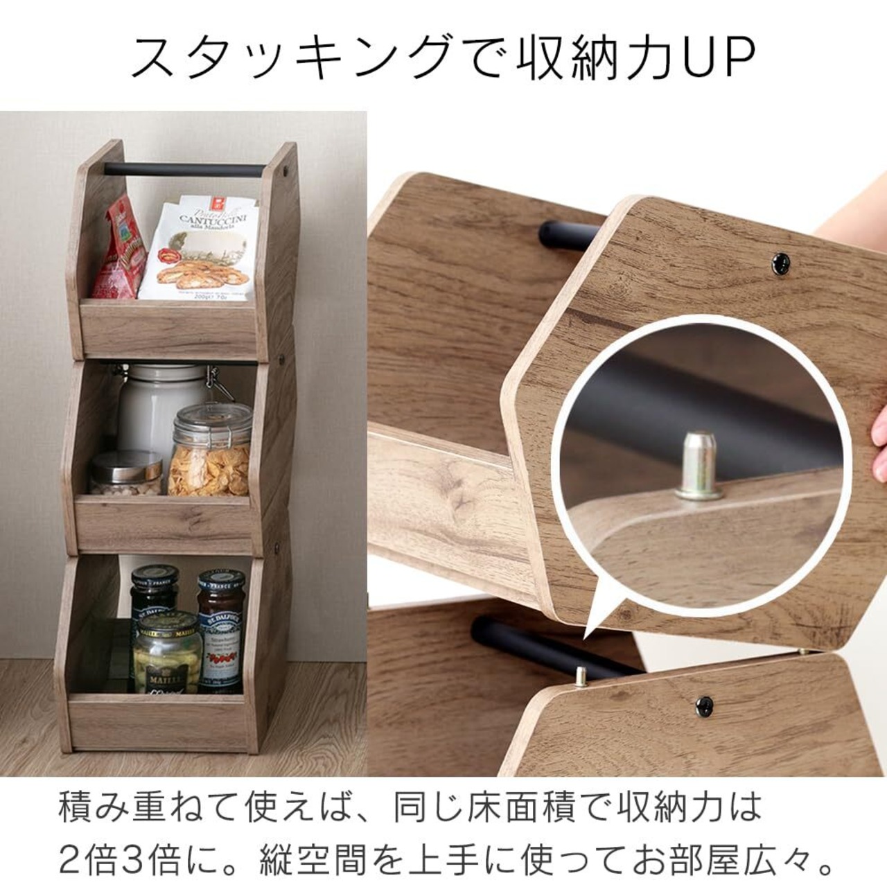 積み重ねて使えば、同じ床面積で収納力は2倍3倍に。