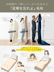 【ロング毛布&2WAYどころじゃない!】 の暖かい毛布は通常サイズよりも約40cm大きいロングサイズで、さまざまな使い方が可能です。➡ ①長身の男性でものびのび眠れます。➡ ②肩までたくし上げて、ふかふかの心地よさを楽しめます。➡ ③襟元を折り返して二重にしたり、ボリュームが2倍になります。➡ ④足元に巻き込んで冷え性対策にも最適です。➡ ⑤つま先から頭まで全身を覆うことができます。 特に冷えやすい足元や肩もしっかりと包んでくれるので、さまざまな使い方でより暖かくお休みいただけます。