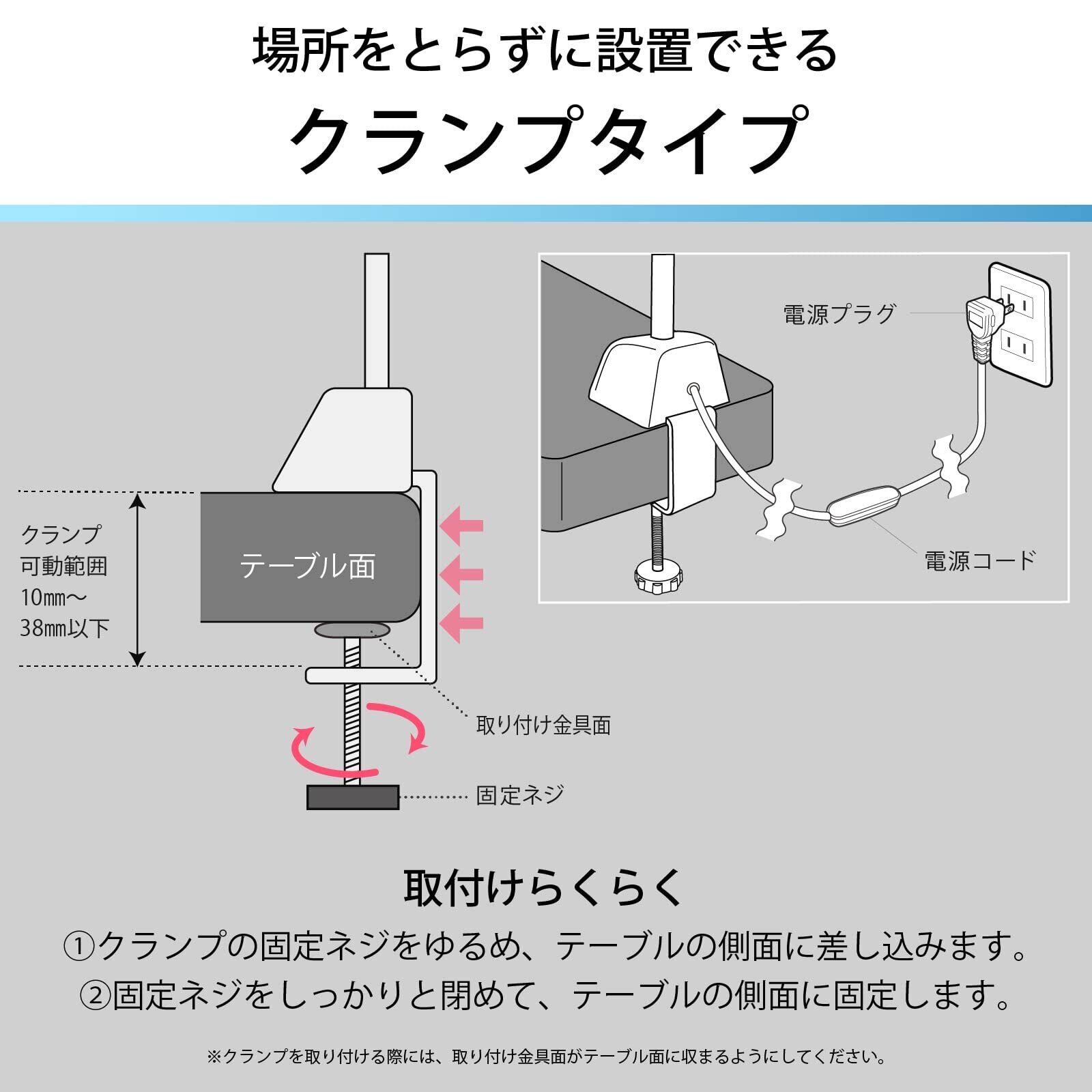 ■特徴: 3段階調光、クランプ設計、省スペース、ホワイトデザイン