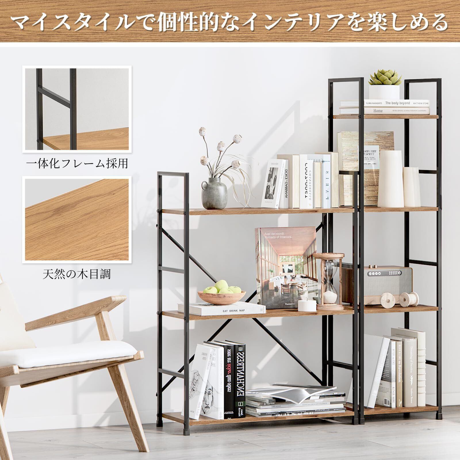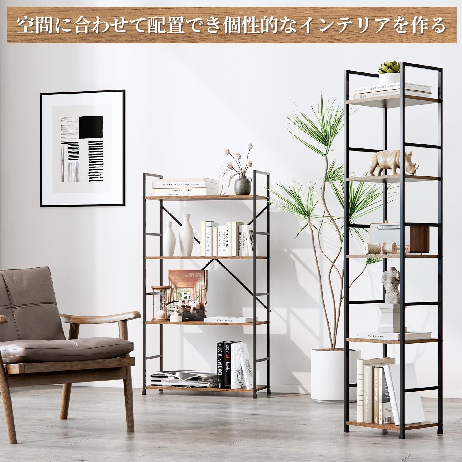 【様々なシーンで活躍】リビングルームで展示台として植物や花とか展示して、書房で本棚としてアルバムやブック漫画とか収納して、キッチンの狭いスペースで小物の収納ラックとしていろんな場所でぴったりです。