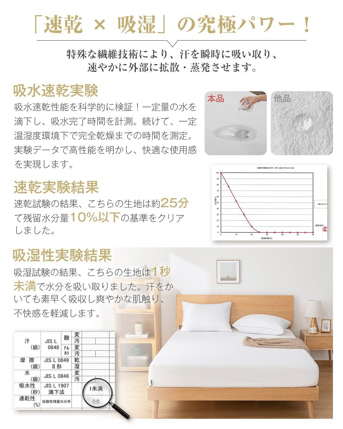 【吸湿 × 速乾で究極のパフォーマンスを実現!】 忙しい毎日を送るあなたに、快適な睡眠をお届けする吸水+速乾オールシーズンボックスシーツが登場しました!このシーツは吸湿性と通気性に優れており、水や汗が生地に触れた瞬間に素早く拡散・蒸発します。そのため、肌にべたつくことなく、常に爽やかな感触を保ち、快適な睡眠をサポートします。また、驚異的な吸水力で、お子さまの寝汗やトラブルも瞬時に吸収。マットレスや敷き布団を常に乾燥させ、カビやニオイを防ぎ、睡眠空間を清潔に保ちます。さらに、洗濯後の超速乾機能も魅力です。通常よりも早く乾くため、梅雨の時期や湿度が高い日でも、洗濯後すぐに使用できます。朝洗濯すれば夜には使えるほどの速さです。水洗い加工を施しているので、縮みやすいというデメリットも改善され、長期的に使用しても型崩れの心配がありません。