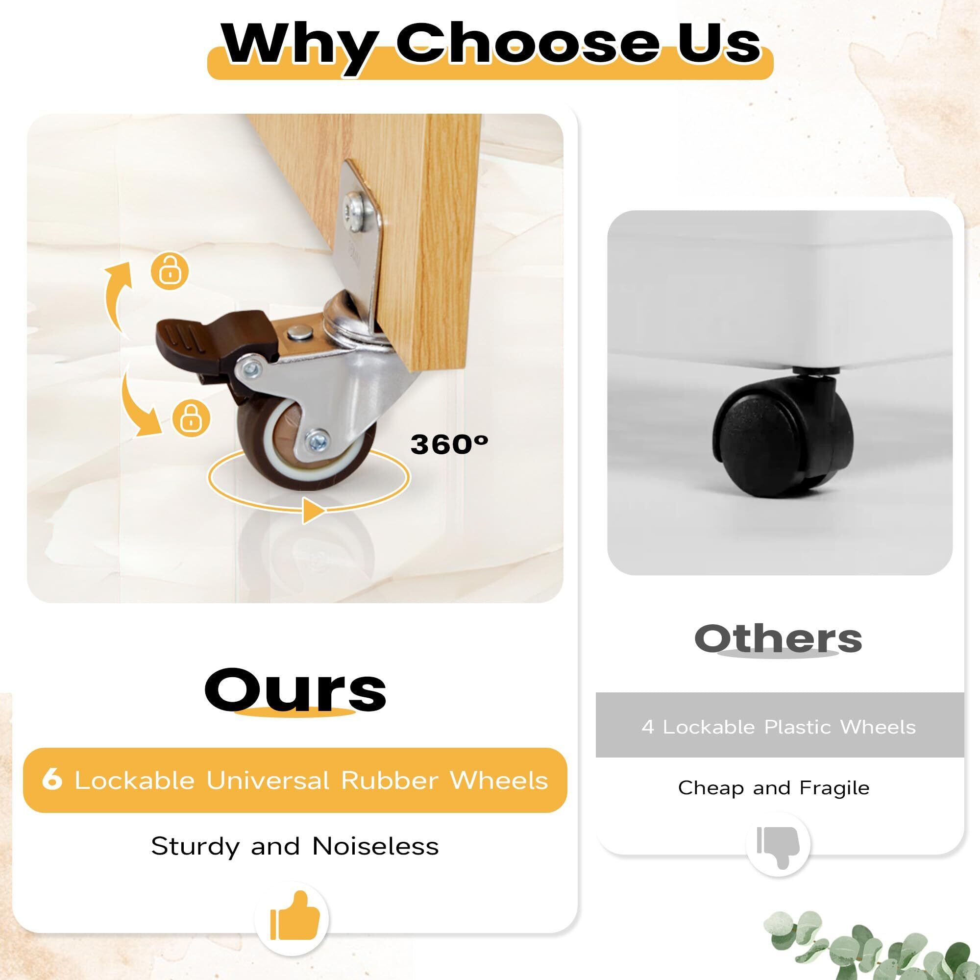 【ロック可能な6つのホイール搭載】頑丈なユニバーサルラバーホイールとロック機構により、この折りたたみ式キッチンテーブルを自宅のどこにでも簡単に移動でき、しっかりと固定して使用中に安定します。