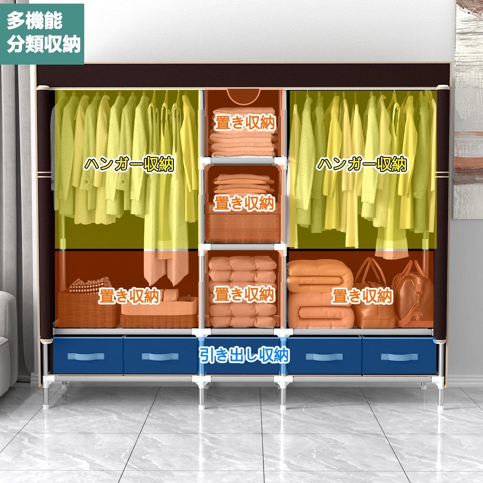 【組み立てが簡単】:クローゼットの構造はシンプルで、ネジや工具を使わずに手作業で簡単に取り付けることができます。インストールなどの問題が発生した場合は、お気軽にご連絡ください。私達はします日本の電子マニュアルまたはその他のヘルプを提供します。