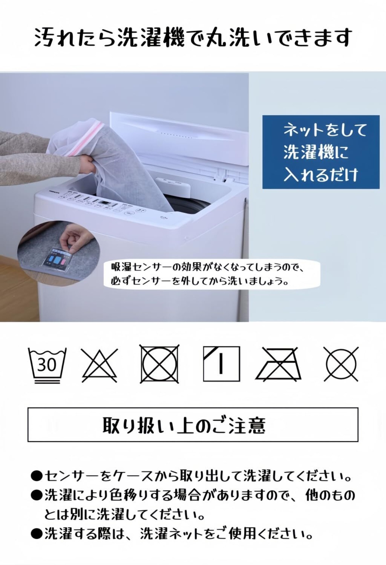 【汚れたら洗濯機で丸洗いできます】使っていると気になる汚れも、ご家庭で丸洗いができるから安心です(洗濯ネットをご使用ください)。いつもスッキリ清潔で衛生的。軽量だからお洗濯の際の持ち運びもラクラク。お洗濯の際は必ず除湿センサーを取り出してください。