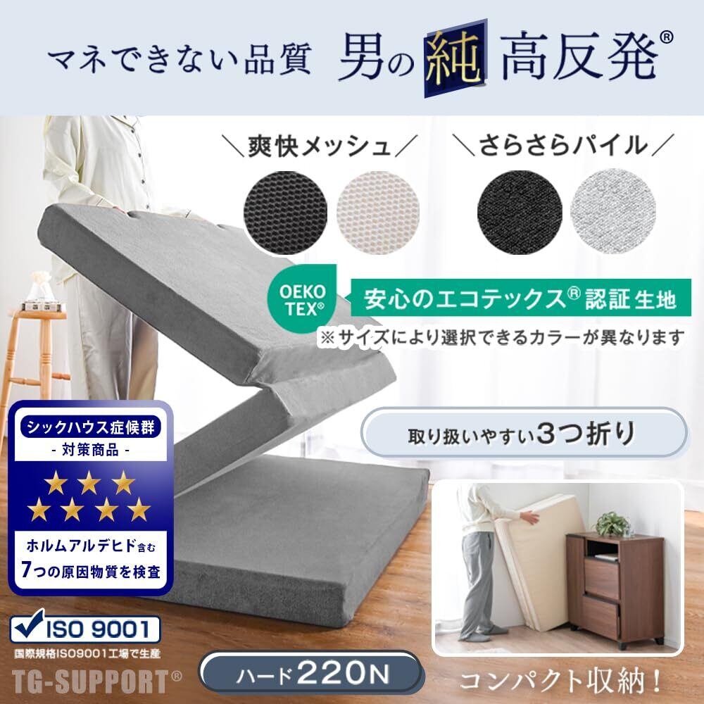 【数量限定】タンスのゲン マットレス シングル 男の「純」高反発 厚み10cm 高反発 高密度30D 硬め220N 三つ折り 竹炭 消臭 パイルブラック 13810052(61207)