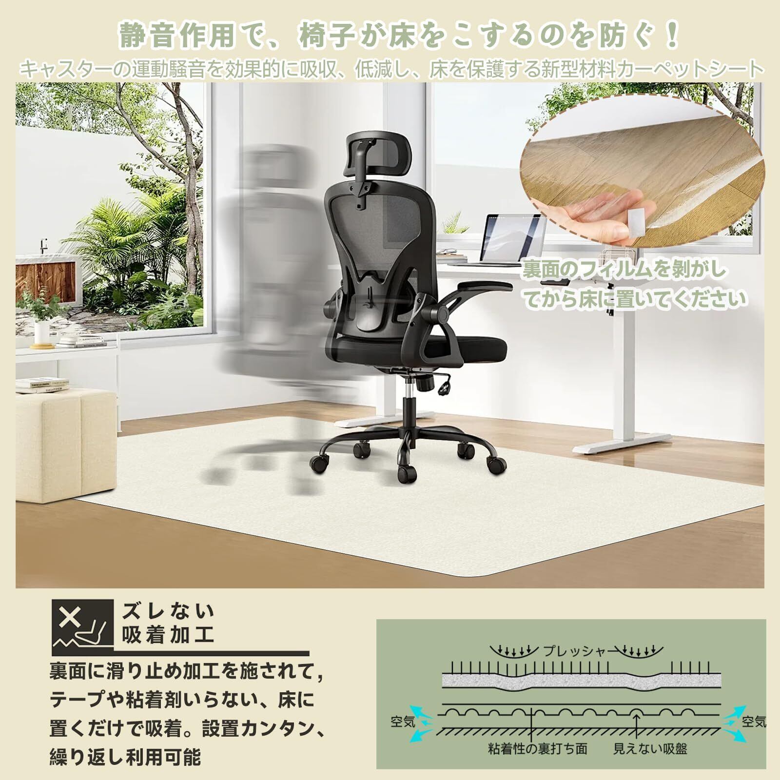 【新着商品】【 限定ブランド】Piiyoow 汎用チェアマット 140*100cm チェアマット、ゲーミングチェアマット、床保護マット、床 傷 防止 マット、防音、丈夫で実用的、床を保護、床擦れを軽減、適度な厚み、滑り止め、シンプルでスタイリッシュ、防音効果、カットしやすい、家庭やオフィスの床に適している[クリームホワイト]