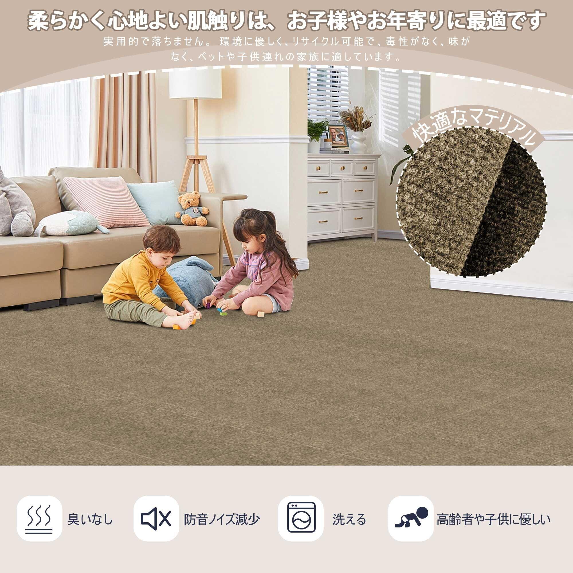 【在庫セール】【 限定】YIDIHO ジョイントマットタイルカーペット【30*30cm】厚さ4 mm 約1畳 吸着マット 自宅/オフィス 床保護 防音 フリーカット 洗える(モカ)