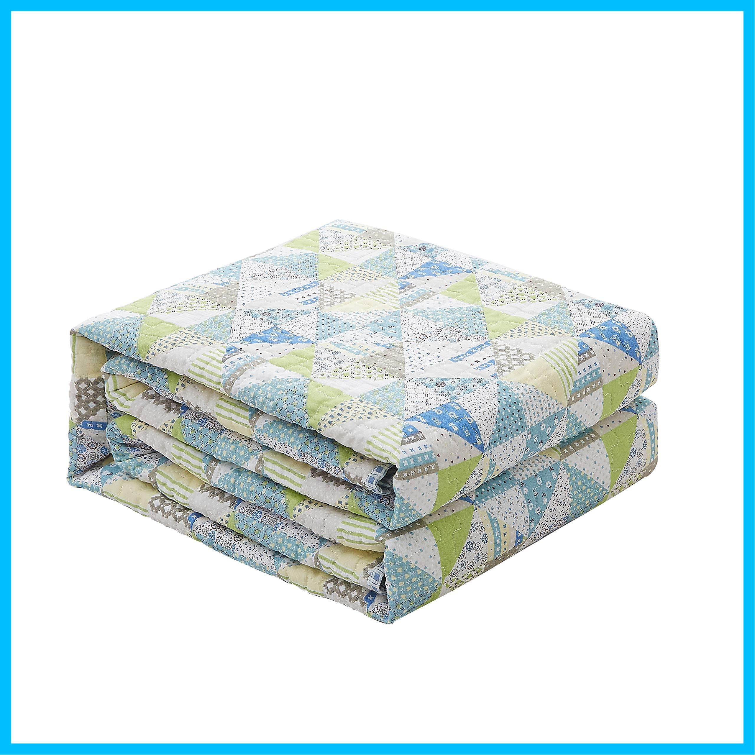 JEMA キルトケット マルチカバー ベッドカバー ソファカバー 水洗いキルト リバーシブル 四季通用 約130X190cm グリーン チエック柄