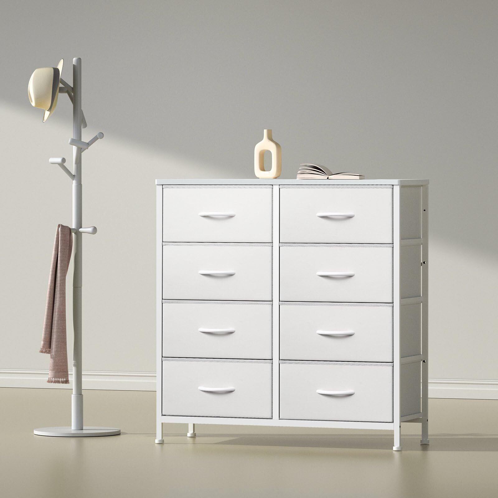 YeTom タンス チェスト 4段 洋服収納 箪笥 箪笥 衣裝ケース 引き出し おしゃれ たんす 衣類チェスト 洋服タンス ファブリックチェスト リビング 収納 多機能 木製天板付き スチールフレーム 大容量 変形にくい 和風 季節性 布製引き出し 組み立て簡単 転倒防止 安定感 キャスター含まない L80×W30×H81cm(4段8杯 白い)