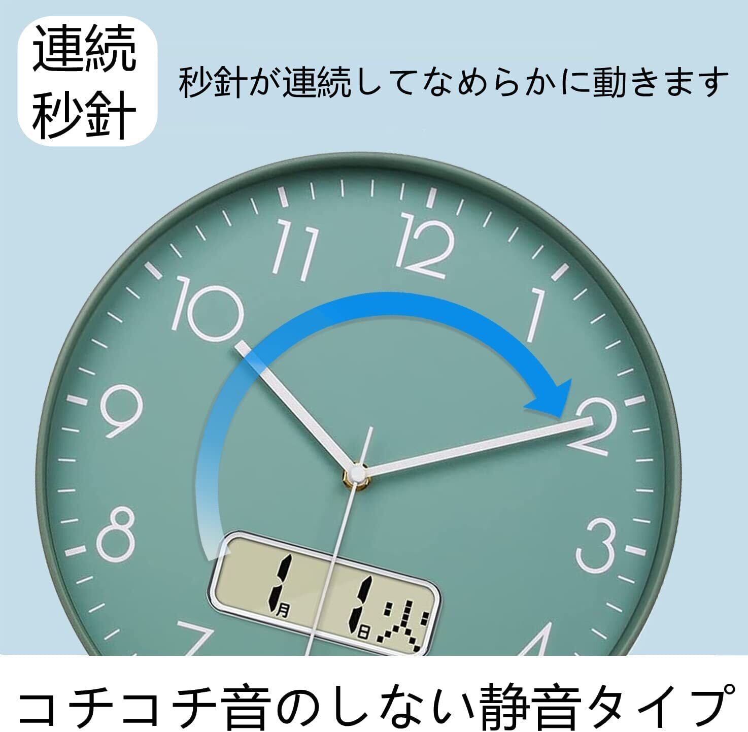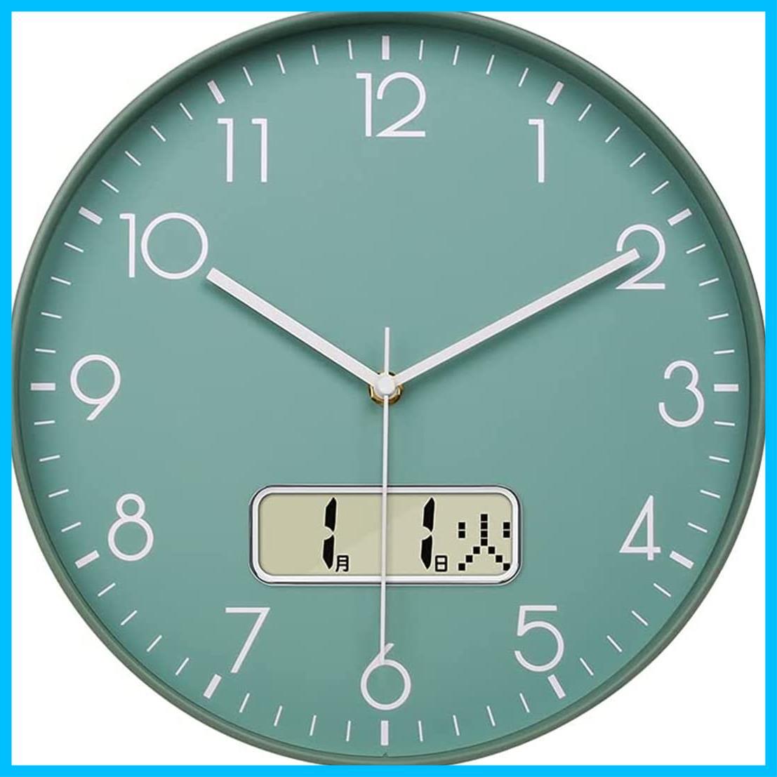 【新着商品】Nbdeal 掛け時計 電波時計 静音 連続秒針 おしゃれ 日付 曜日表示 直径30cm 壁掛け 時計 北欧 (グリーン)