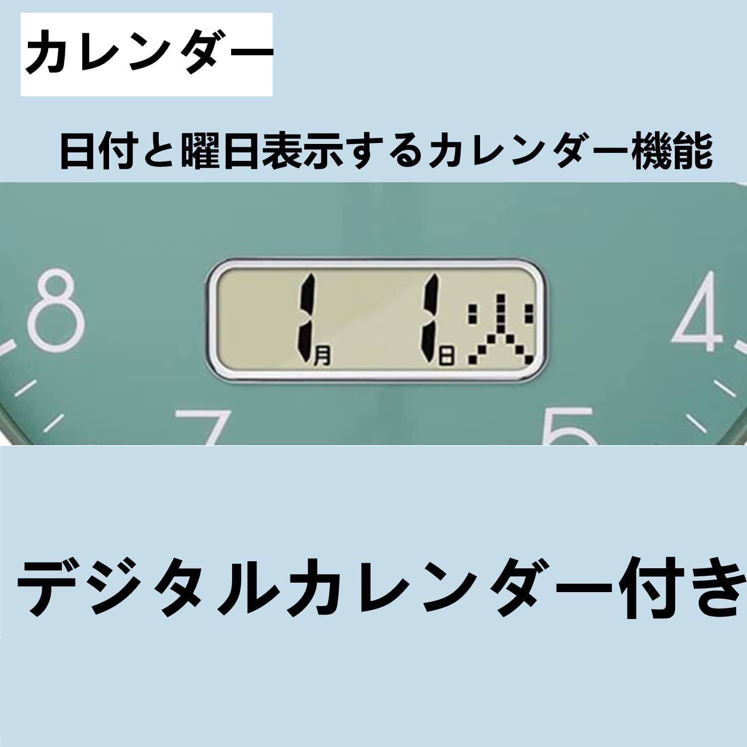 この掛け時計は、日付と曜日を表示する機能も備えており、日々の生活に便利さをプラスします。忙しい毎日の中で、簡単に日付や曜日を確認できるのは嬉しいポイントです。