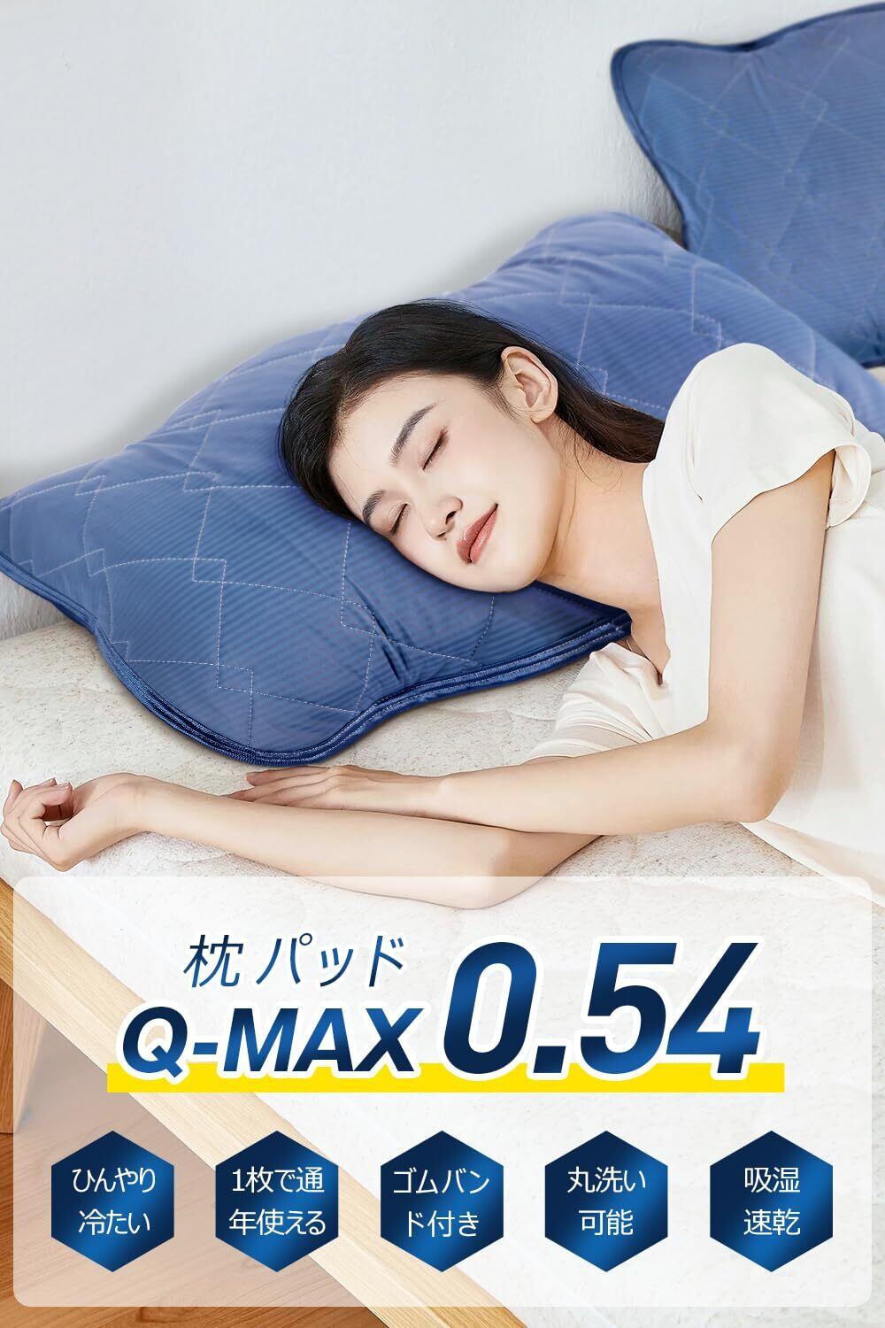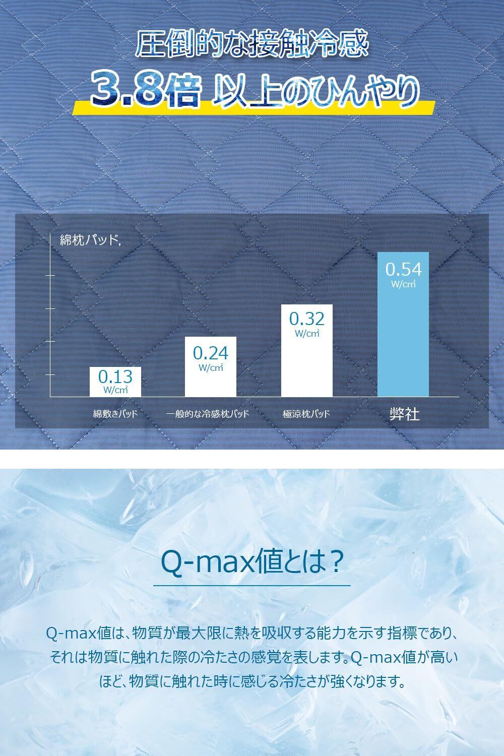 【 Q-MAX0.54でひんやり長持ち】Q-MAX値0.54を誇るこの冷感枕カバーは、標準的な冷感素材の0.2と比較して、2倍以上の冷感効果を持ちます。触感はサラサラしており、縮みや型崩れにも強い耐久性があります。体が触れていない部分は熱を放散し、一晩中冷たさをキープします。