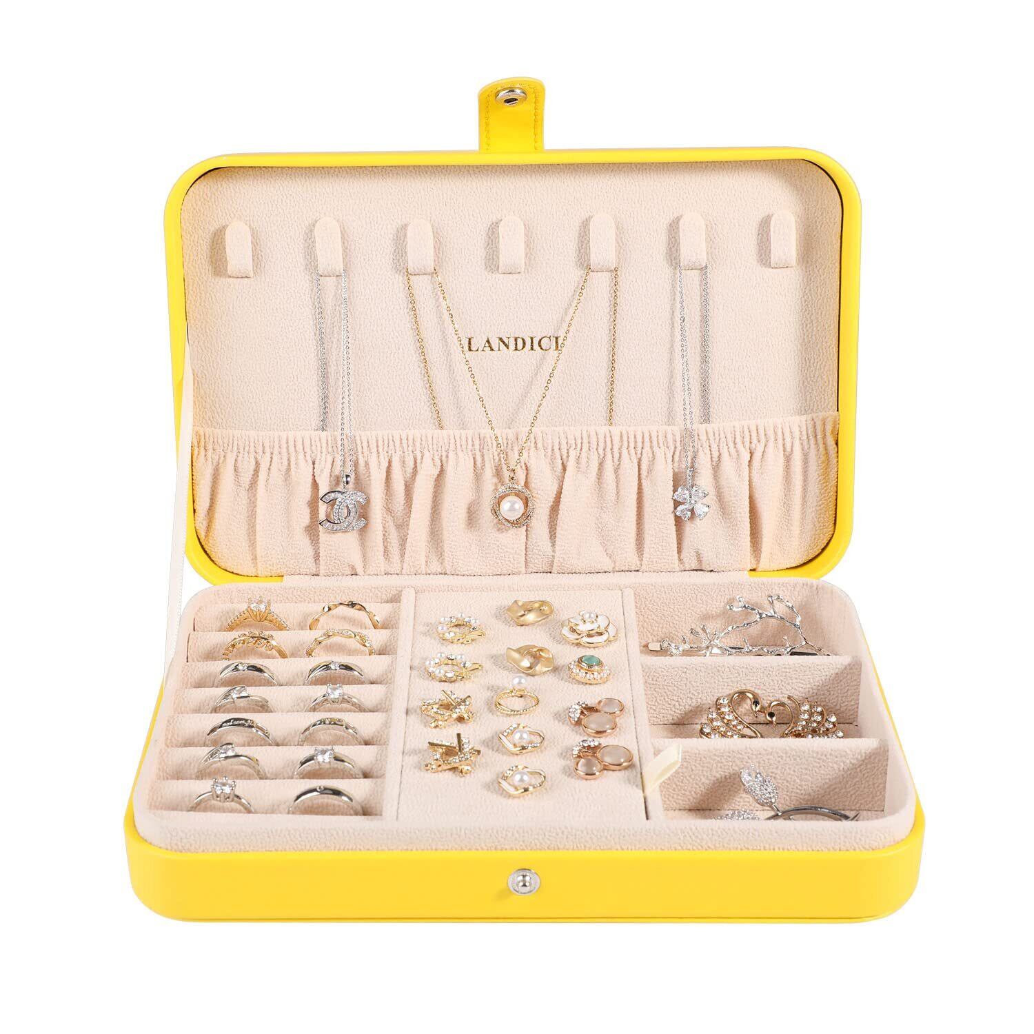 LANDICI ジュエリーボックス PUレザージュエリーケース ジュエリーボックス 指輪置きジュエリー収納ケース 携帯用 持ち運び 仕切り付き宝石箱 jewelry box organizer じゅえりーぼっくす ネックレス イヤリング ピアス ブレスレットなど小物入れアクセサリー ボックス メンズ 女性 女の子用 きいろ