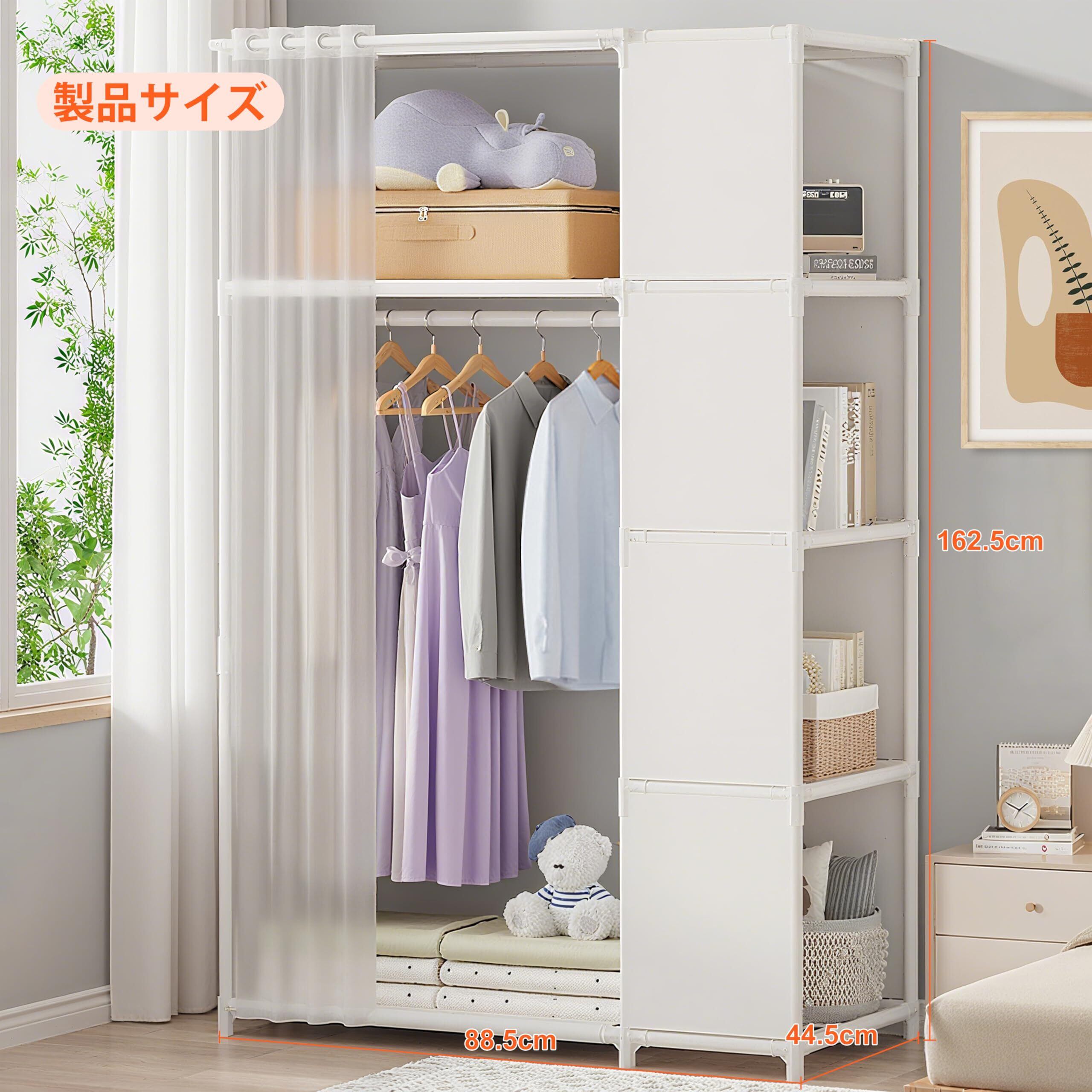幅88.5cm、奥行き44.5cm、高さ162.5cmのサイズ感はさまざまな衣類や小物を収納するのに最適です。調節可能な棚で、自分のスタイルやニーズに合わせた収納が可能。多様なアイテムを整理整頓したい方にぴったりの設計です。