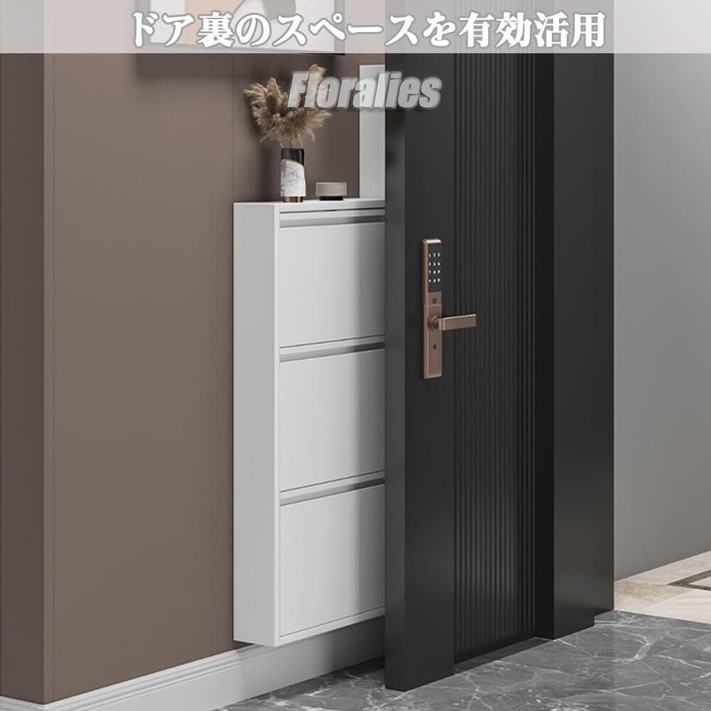 下駄箱 スリム 薄型 大容量 斜め置き 完成品 スチール シューズラック 玄関 おしゃれ 奥行15.2cm 超薄型下駄箱 靴収納キャビネット