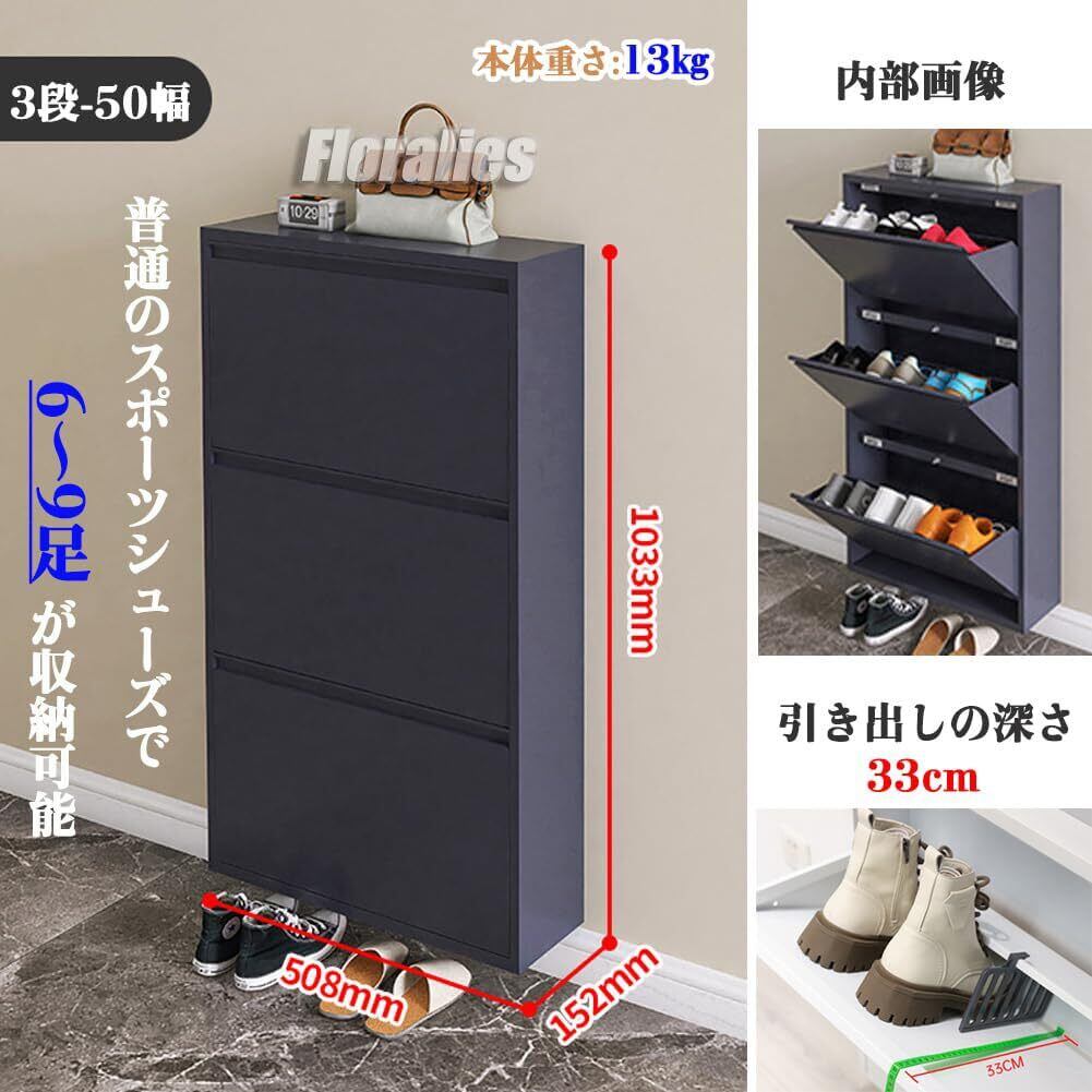 Floralies 下駄箱 スリム 薄型 大容量 斜め置き 完成品 スチール シューズラック 玄関 おしゃれ 奥行15.2cm 超薄型下駄箱 靴収納キャビネット (グレー, 3段-奥行15.2cm×幅50cm)