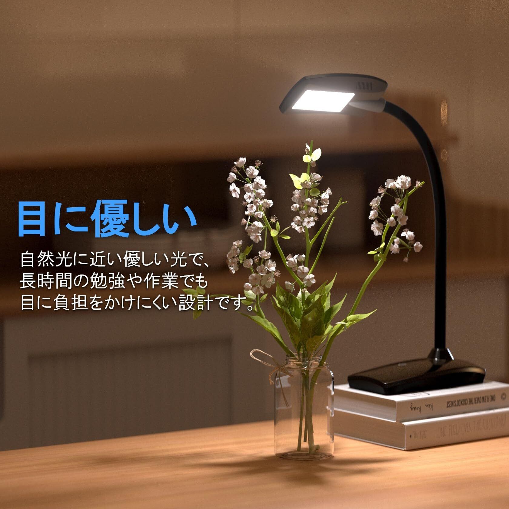 LUTW デスクライト LED 目に優しい スタンドライト 省エネ USB給電式 3段階調光 明るい 卓上ライト 昼白色 5W 450lm 明るさ調整 フレキシブルアーム 読書灯 電気スタンド 卓上 おしゃれ 寝室 学習机 勉強机 ライト テーブルライト 卓上照明 1.5Mケーブル ブラック