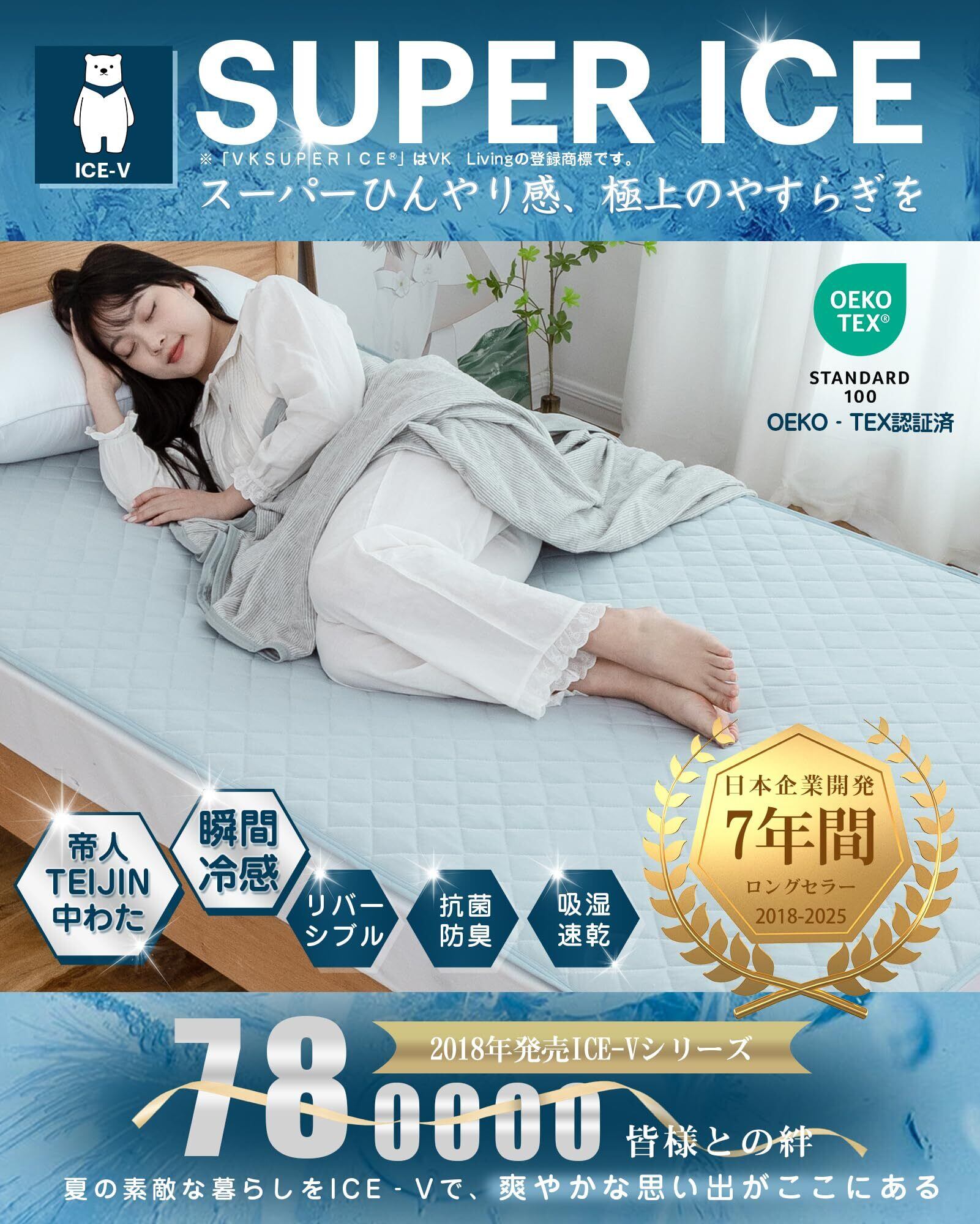 【進化を続ける「ICE-Vシリーズ」7周年記念!】人気のICE-Vシリーズ、今年で7周年!5年連続敷きパッド第1位、掛け布団第1位、タオルケット第1位、3冠達成!合計78萬枚突破!大変多くのご注文をいただき、本当にありがとうございます。OEKOTEX認証済、ISO9001認定工場、Transparencyによる確認済、最高の眠りを提供します!「ICE-Vシリーズ」は、これからも進化し続けます。