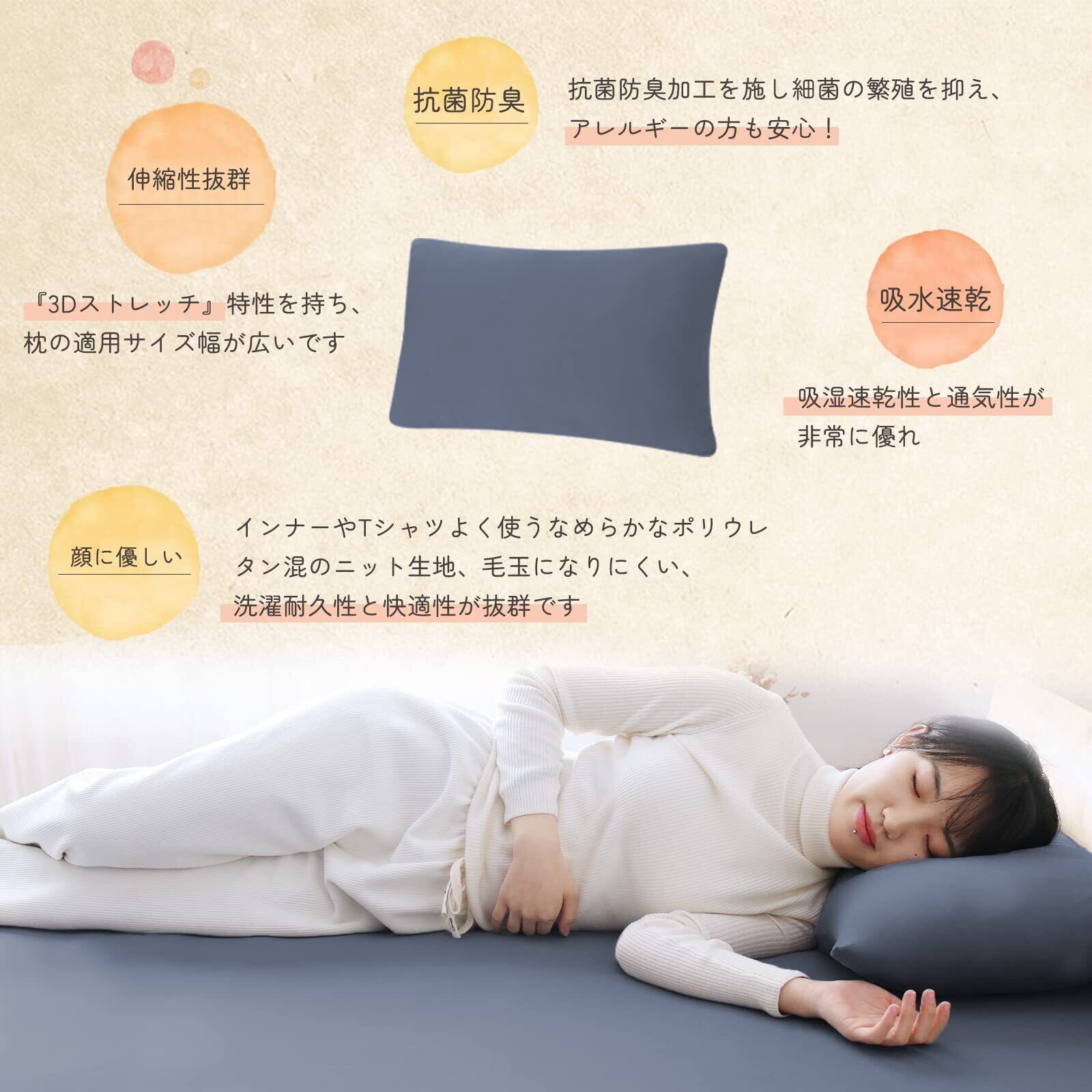 【超ソフト・弾力UP】のびのび枕カバー2枚組 30x50cm~43x63cm枕適用 まくらカバー ピローケース 封筒式 3Dストレッチ Tシャツ素材 綿タッチ さらさら肌触り 抗菌防臭 吸汗速乾 伸縮オールシーズン 丸洗い グレー