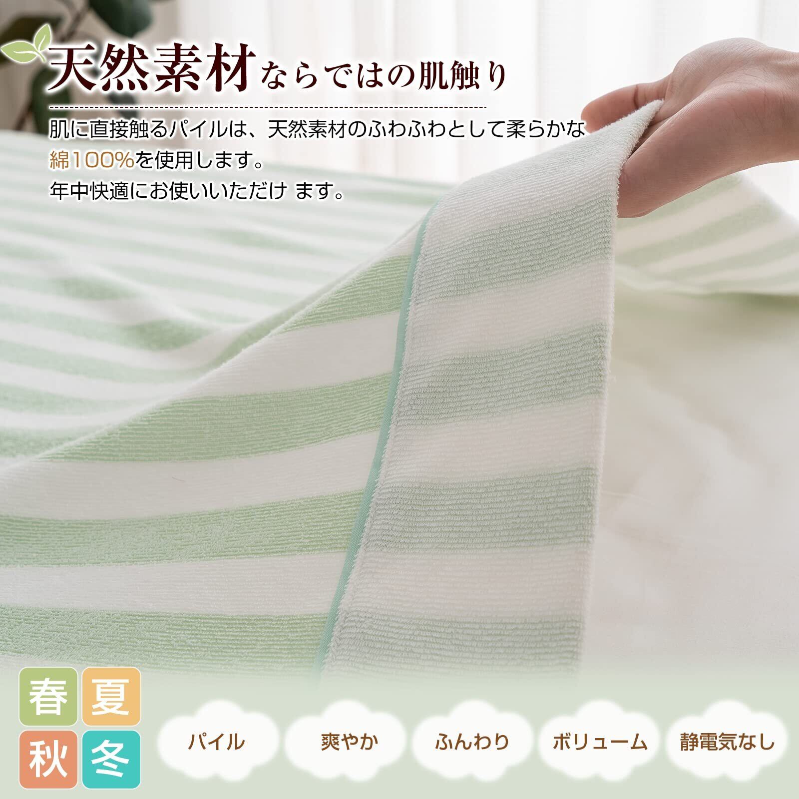 Sねむりのサンショップ タオルケット シングル 綿100% タオル地 肌掛け オールシーズン 吸汗 吸湿 通気 柔らか 肌触り ふわふわ 丸洗い 爽やか 抗菌防臭 モコモコ パイルが抜けにくい マイヤー織り サラサラ ボリューム リバシーブル 軽量 ベタつきにくい ブランケット 夏 ふんわり ムレにくい グリーン 140*200cm