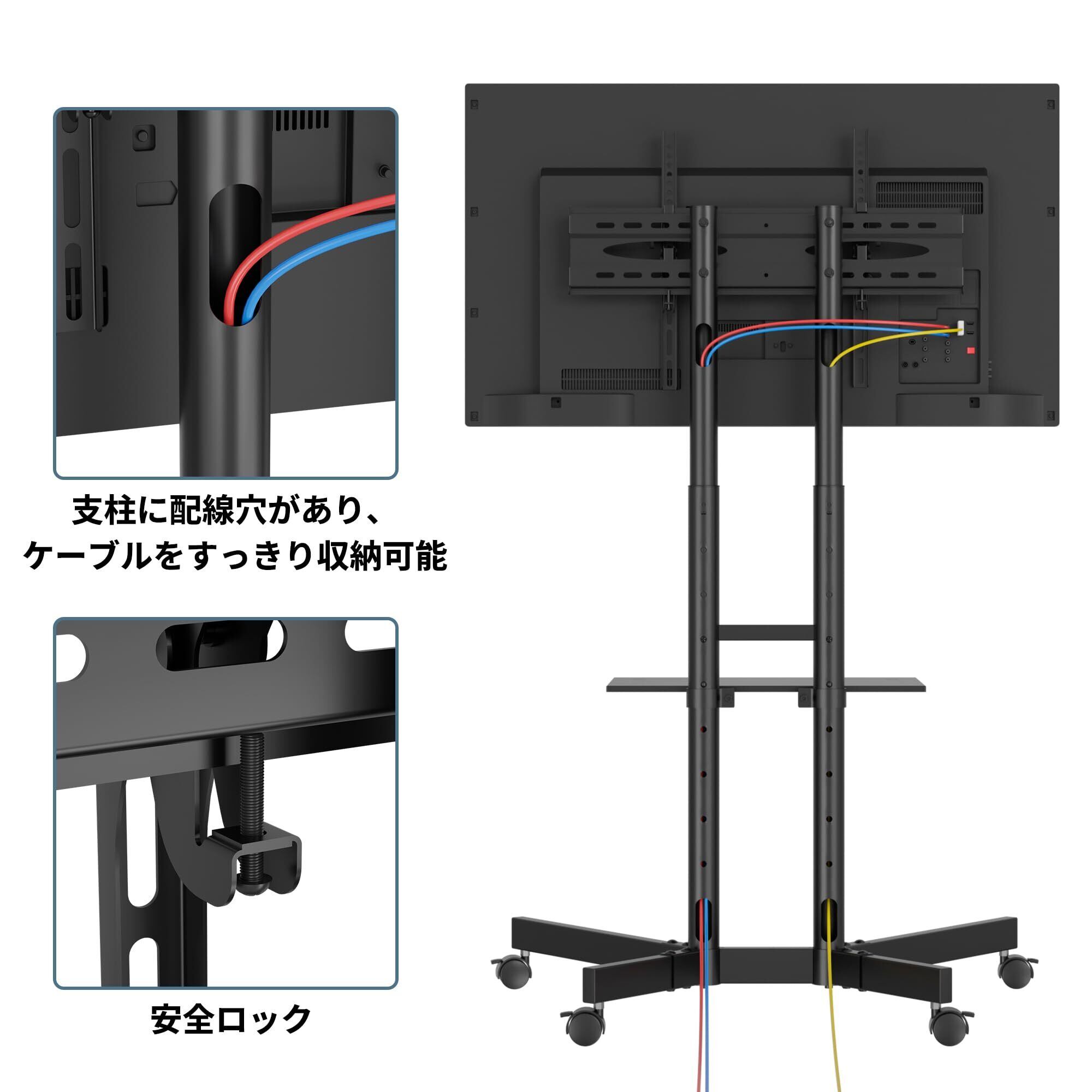 1homefurnit 移動式 壁寄せテレビスタンド 32-75インチ対応 キャスター付き VESA600x400mm 高さ調整可能 耐荷重55kg スイベル ハイタイプ テレビ台 ロータイプ対応 ブラック