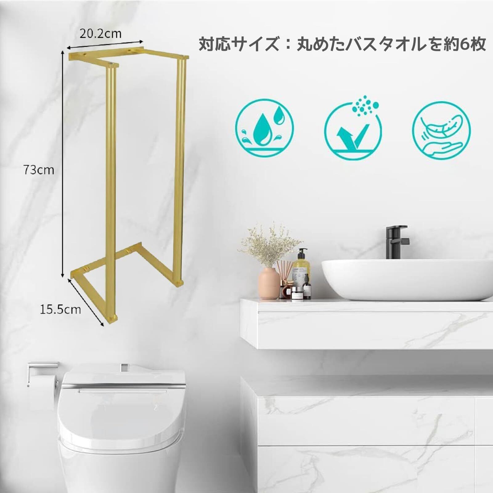 YWHWLX タオルラック 壁取り付け タオルハンガー タオル掛け バスルームタオル収納 バスタオルスタンド おしゃれ 丸めて収納ランドリーラック バスタオル置き タオル収納 タオルホルダー 取り付け簡単 省スペース コンパクト シンプル (ゴールド)