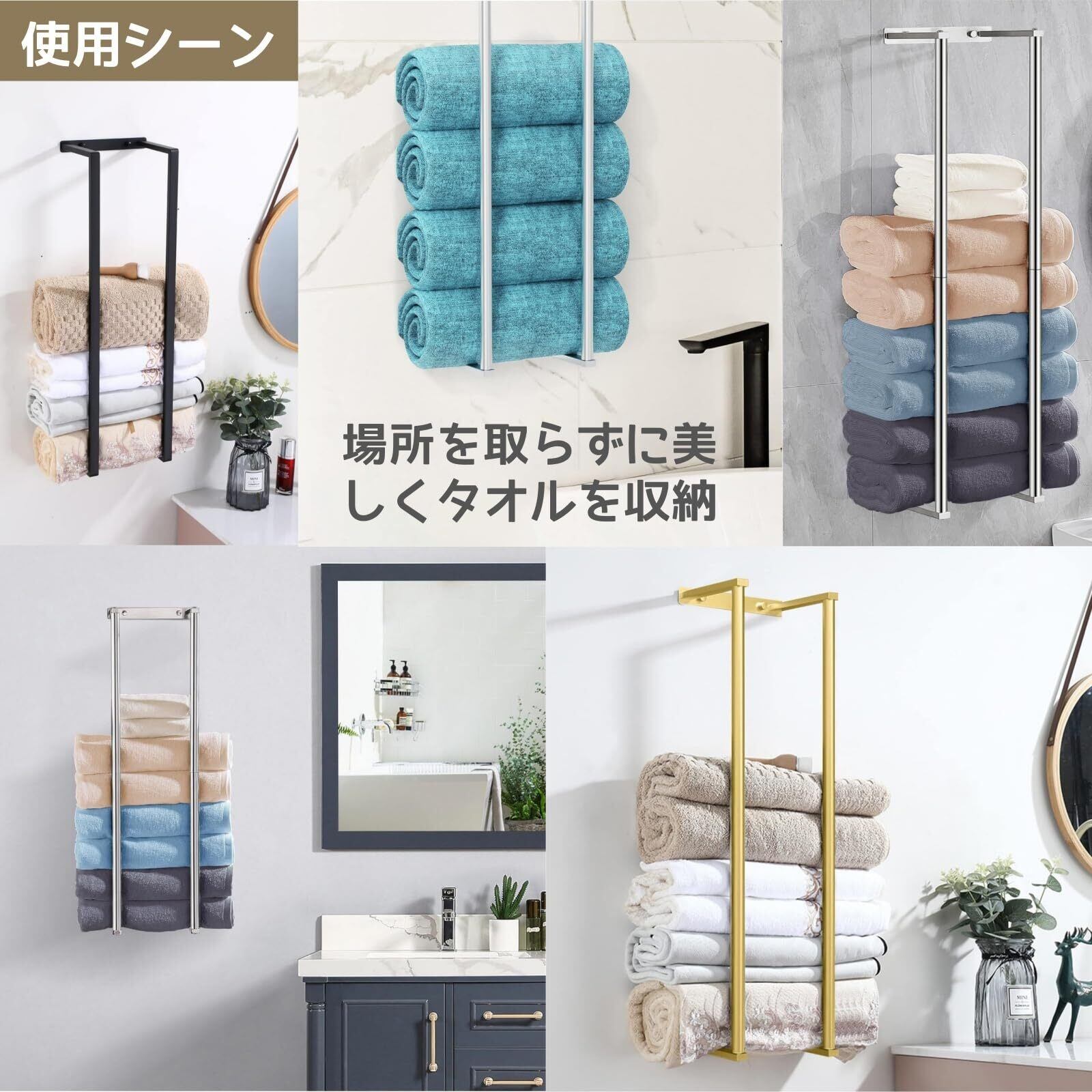 【幅広い用途】このタオル掛け 壁取り付けは省スペースで、バスルームのスペースを取りすぎず、タオル、バスタオル、ヨガタオルなどを収納できます。バスルーム、ホテル、サロン、ランドリールームなどの場所に適しています。